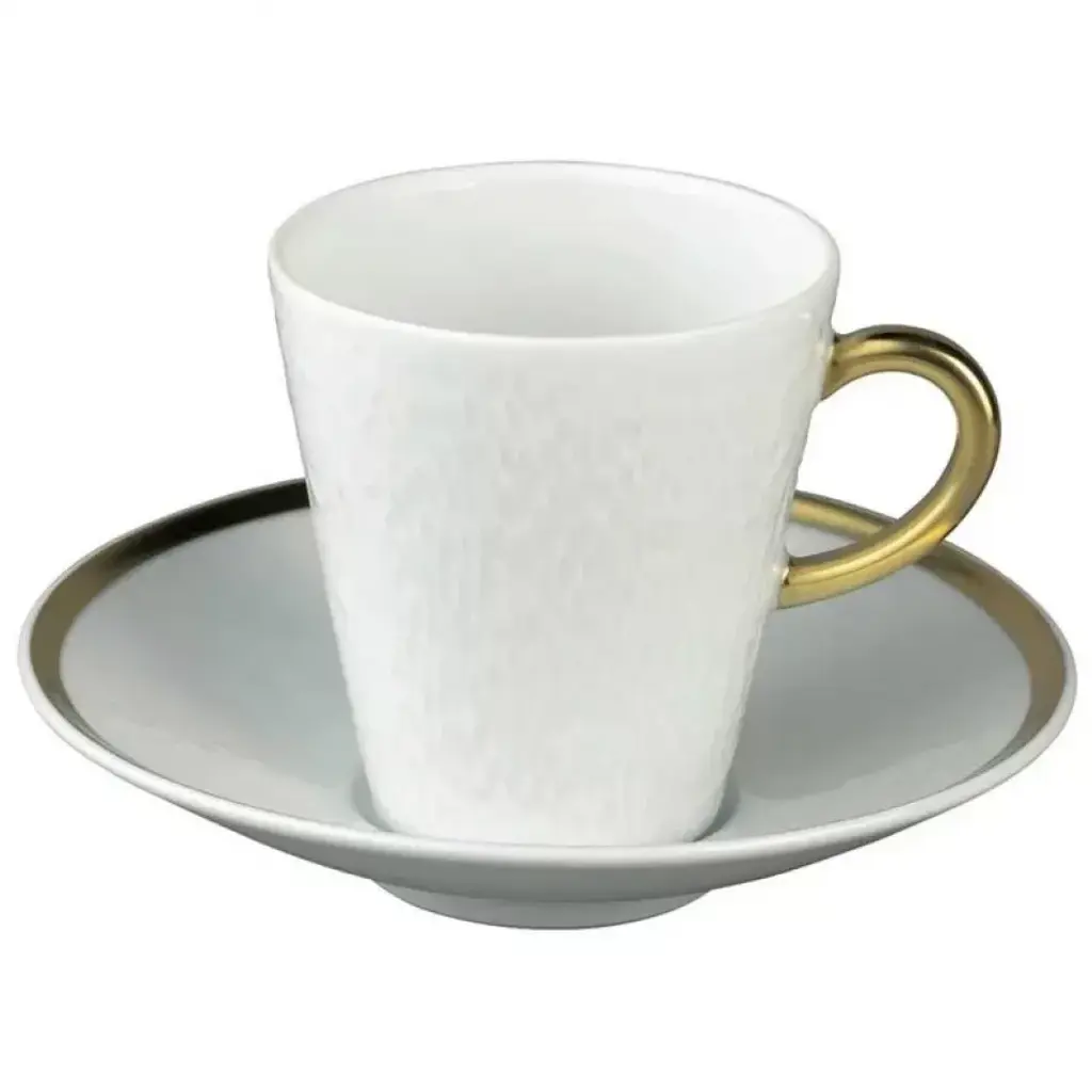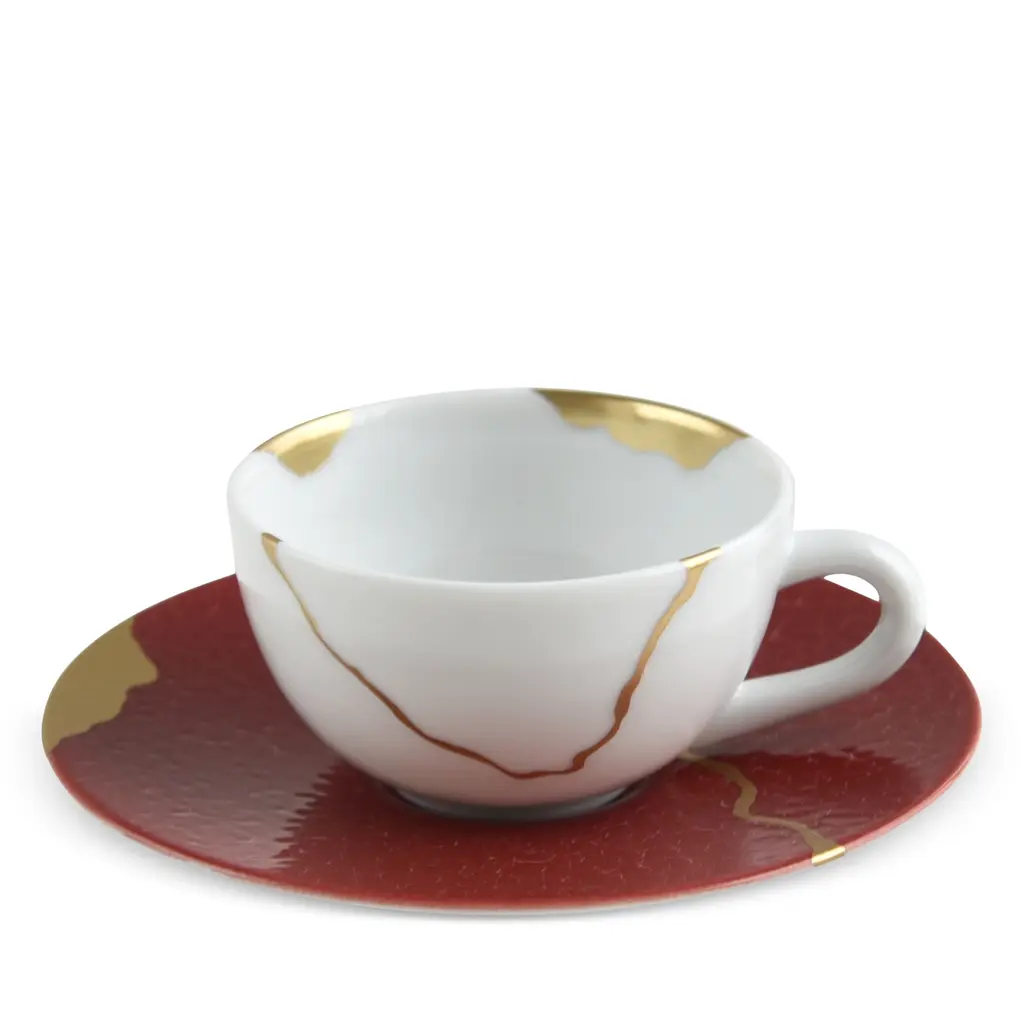 The artist Sarkis who designed this collection, is fascinated by this 16th century Japanese technique entitled--Kintsugi. The idea is to make visible repairs on fired ceramic using a mix of lacquer and gold. To complete the existing collection of gold trompe l'oeil on a pristine white background, Bernardaud is adding two new colors: Emperor Red and Coal Black. The red is deep, bold and textured - a highly complex color to master and reminiscent of the ancient lacquer finish; the coal black is solid and deep - mixed with gold, it adds an added touch of elegance and sophistication.
