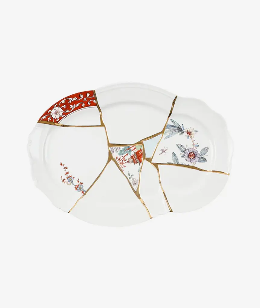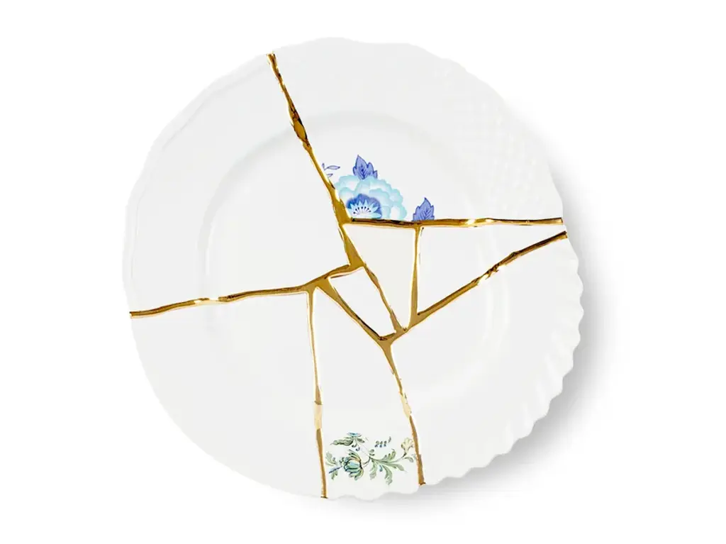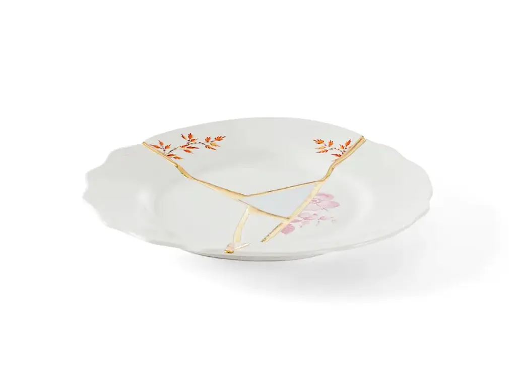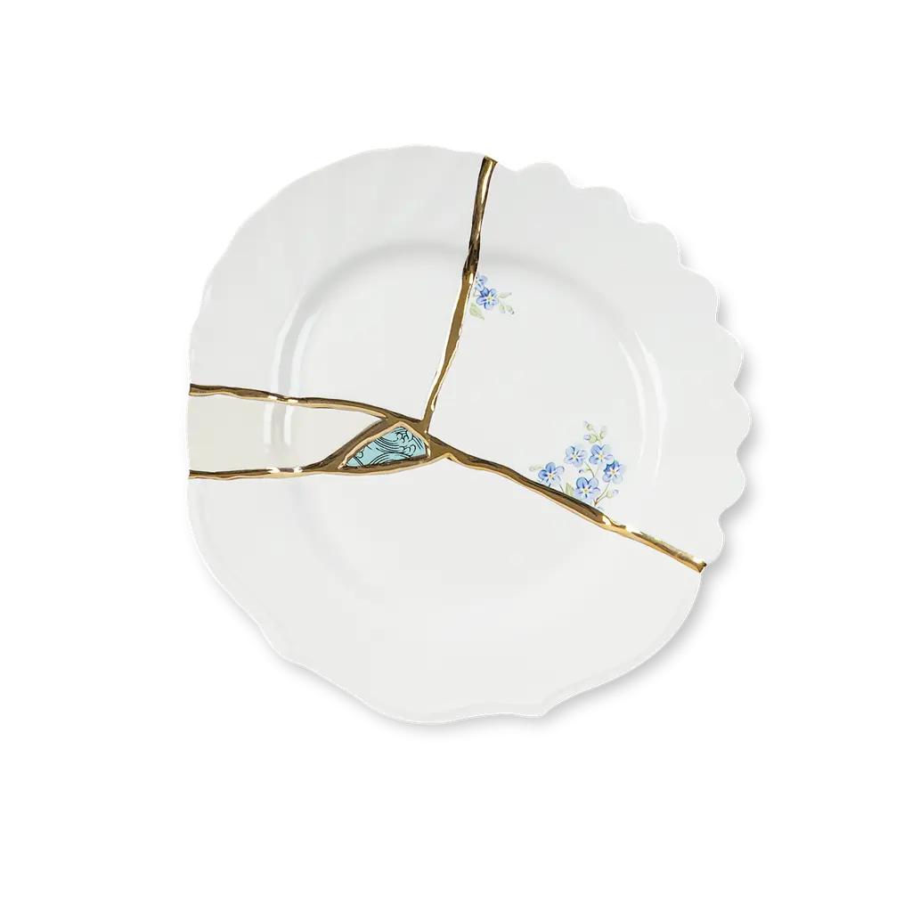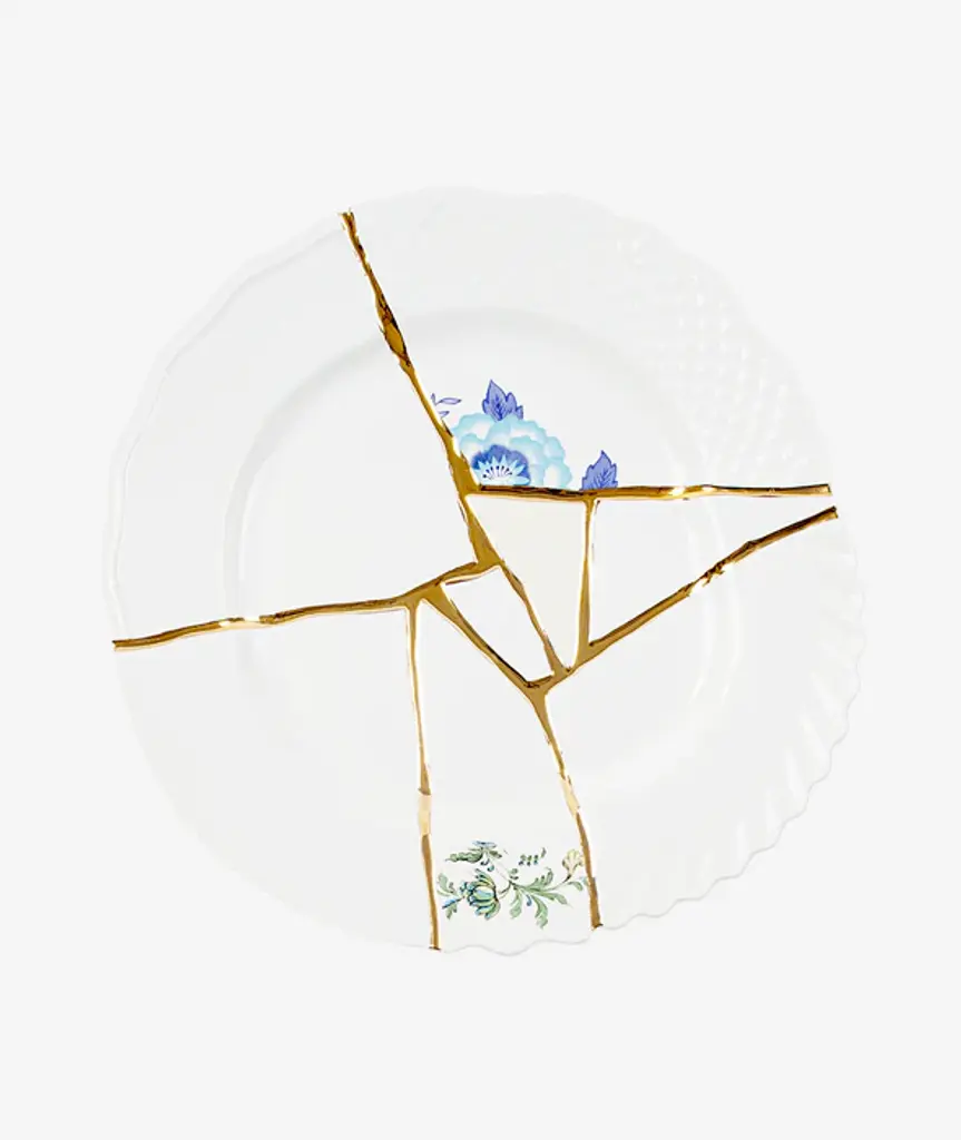 Plate Material: porcelain, goldDishwasher safeKintsugi Japanese art assumes contemporary shapes. The delicate porcelaine is glorified and enriched with gold fragments for a tableweare collection made of charming and unexpected compositions.