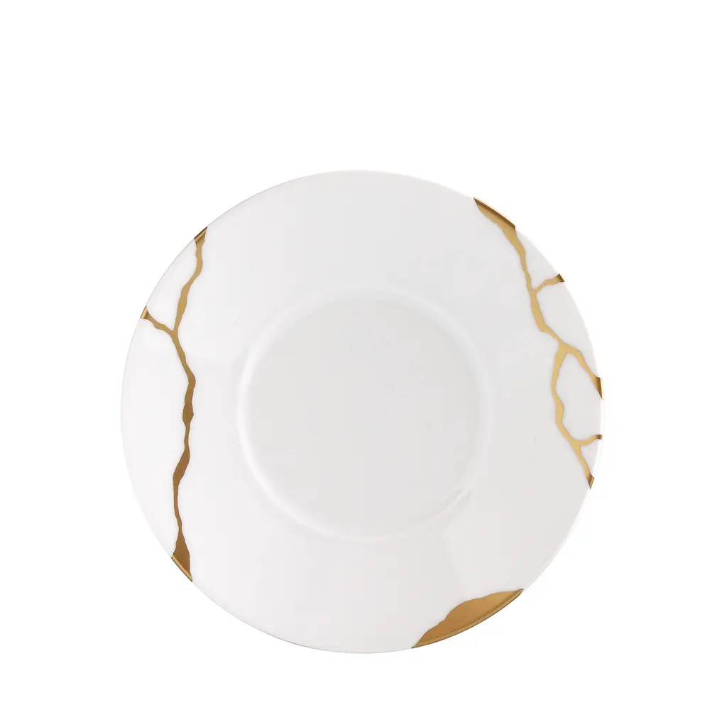 Inspired by the 16th century Japanese art, Kintsugi, a unique art form that makes visible repairs on ceramic, Bernardaud's Kintsugi-Sarkis Dinnerware Collection mixes together lacquer and 24K gold for an opulent design that is both artistic and awe-inspiring.