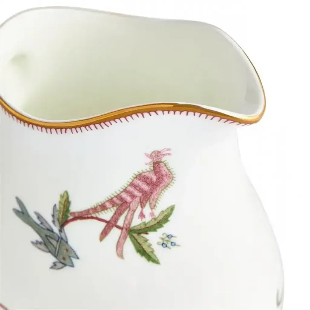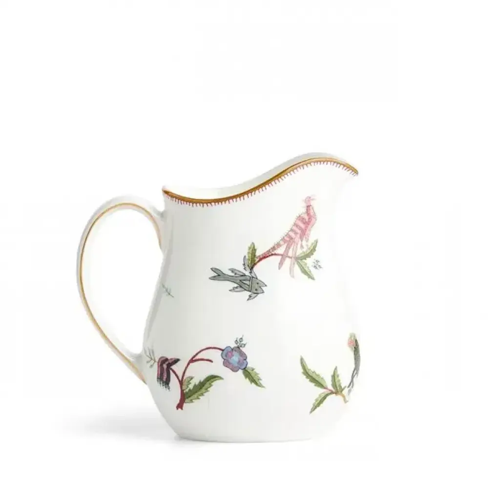 Enchant your guests with the otherworldly creatures and bold colours on this ornate jug. Kit Kemp's collection is inspired by her love of animals. Here, she has turned a teatime accessory into a parade ground where birdlike creatures with striking feathers jostle for our attention. Elegant gold banding on the rim and handle add a luxurious touch.