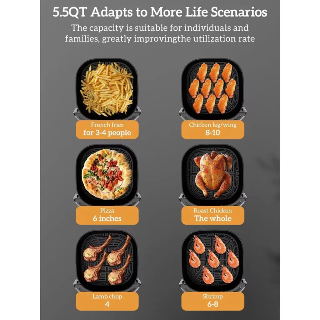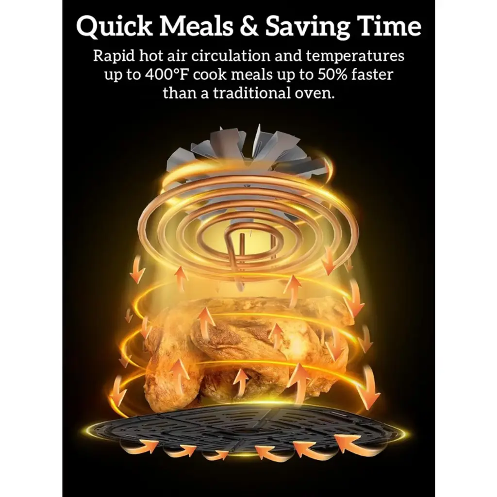 Bring fast, flavorful meals to your kitchen with the Kitchen Elite 5.28-Quart Digital Air Fryer Oven. Designed for convenience and compact enough to fit seamlessly on your countertop, this sleek appliance is perfect for those looking to simplify mealtime without sacrificing taste or space. Whether you're crisping up fries, cooking chicken wings, or reheating leftovers, this air fryer oven delivers satisfying results with up to 97% less oil. The digital display and 6 intuitive presets make operation easy, even for beginner cooks. With a wide temperature range from 150 to 400 degrees Fahrenheit, it gives you the versatility to bake, roast, or air fry with precision. No preheating means less time waiting and more time enjoying your meals. And with its nonstick, dishwasher-safe basket, cleanup is as effortless as cooking. Weighing less than 8.5 pounds, this small but mighty appliance is perfect for apartments, dorms, RVs, or smaller kitchens. Its space-saving design allows for easy storage, and the sturdy build ensures long-lasting performance that suits daily use. Whether you're preparing a quick snack or a solo dinner, this fryer oven delivers speed, flavor, and convenience. Combining functionality and modern design, the Kitchen Elite Air Fryer Oven stands out as a versatile addition to any home kitchen. Experience fast cooking, easy operation, and healthier meals—all with one compact appliance that’s built to perform.