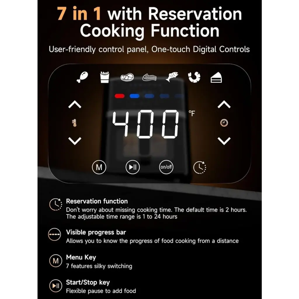 Bring fast, flavorful meals to your kitchen with the Kitchen Elite 5.28-Quart Digital Air Fryer Oven with Window. Designed for convenience and compact enough to fit seamlessly on your countertop, this sleek appliance is perfect for those looking to simplify mealtime without sacrificing taste or space. Whether you're crisping up fries, cooking chicken wings, or reheating leftovers, this air fryer oven delivers satisfying results with up to 97% less oil. The digital display and 7 intuitive presets make operation easy, even for beginner cooks. With a wide temperature range from 150 to 400 degrees Fahrenheit, it gives you the versatility to bake, roast, or air fry with precision. No preheating means less time waiting and more time enjoying your meals. And with its nonstick, dishwasher-safe basket, cleanup is as effortless as cooking. Weighing less than 8 pounds, this small but mighty appliance is perfect for apartments, dorms, RVs, or smaller kitchens. Its space-saving design allows for easy storage, and the sturdy build ensures long-lasting performance that suits daily use. Whether you're preparing a quick snack or a solo dinner, this fryer oven delivers speed, flavor, and convenience. Combining functionality and modern design, the Kitchen Elite Air Fryer Oven with Window stands out as a versatile addition to any home kitchen. Experience fast cooking, easy operation, and healthier meals—all with one compact appliance that’s built to perform.