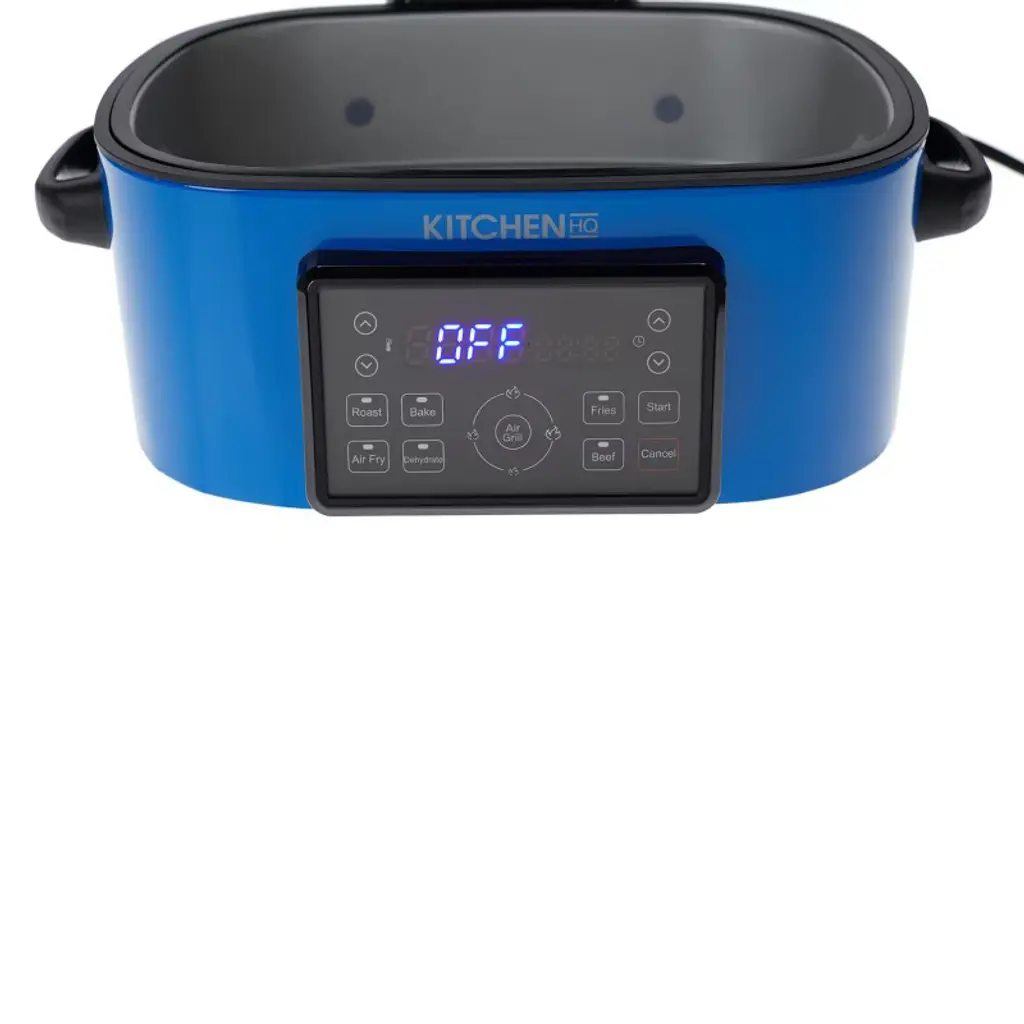 The Kitchen HQ 7-in-1 Air Fryer Grill will be the only thing you'll need on your countertop, replacing your grill, air fryer, dehydrator, oven, and much more. It's easy to use and boasts a large 6.5 qt. capacity — perfect to create meals large and small. Features seven preset functions: Roast, Bake, Dehydrate, Air Fry, Fries, Beef and Air Grill with low, medium, high, and max temperature settings. Also offers an adjustable temperature range from 105 to 515 degrees F. Comes with a recipe book. Item is Manufacturer Refurbished. When a product is Manufacturer Refurbished, it is tested and checked to operate as a brand new item should. Many times it is as simple as the box being opened by mistake or for quality checks. Once the box has been opened companies cannot legally sell these items as New. Each item is inspected, rerun down the production line and triple checked for quality before being shipped. We are so confident with the quality of our Factory Remanufactured items that we offer a great return policy with every purchase, so buy with confidence!