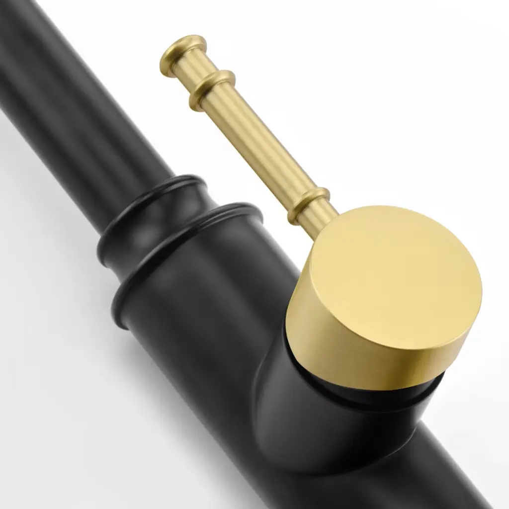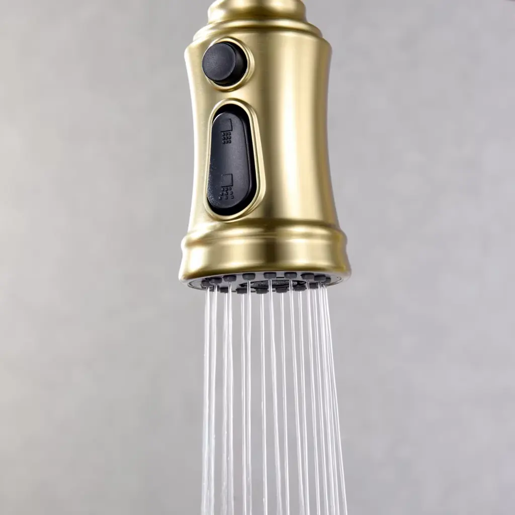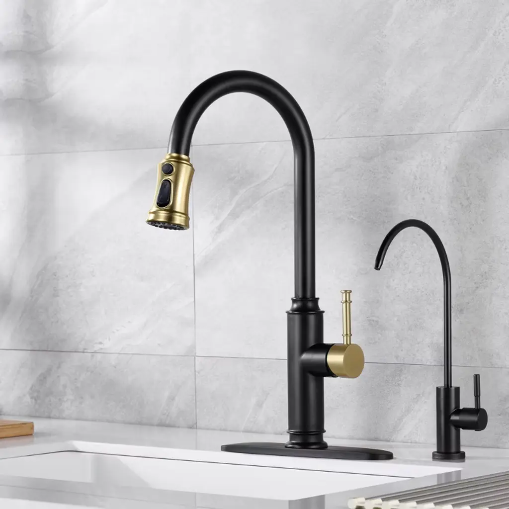 Kitchen Sink Faucet With Pull Down Dual Function Sprayer, High Arc With Deck Plate, Black And Gold