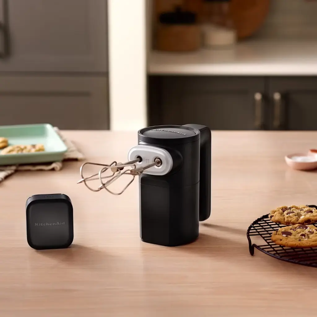 The power to make. The power to move. Create anywhere using the KitchenAid Go™ Cordless Hand Mixer. Powered by a rechargeable 12v MAX removable battery, the new cordless hand mixer delivers 60 minutes of continuous run time* and performance, so you can cook wherever, whatever, and however you choose. *Maximum initial battery voltage (measured without a workload) is 12 volts. Nominal voltage is 10.8. Actual run time will vary based on recipe and/or attachments used. Battery life impacted by factors such as battery age and use.