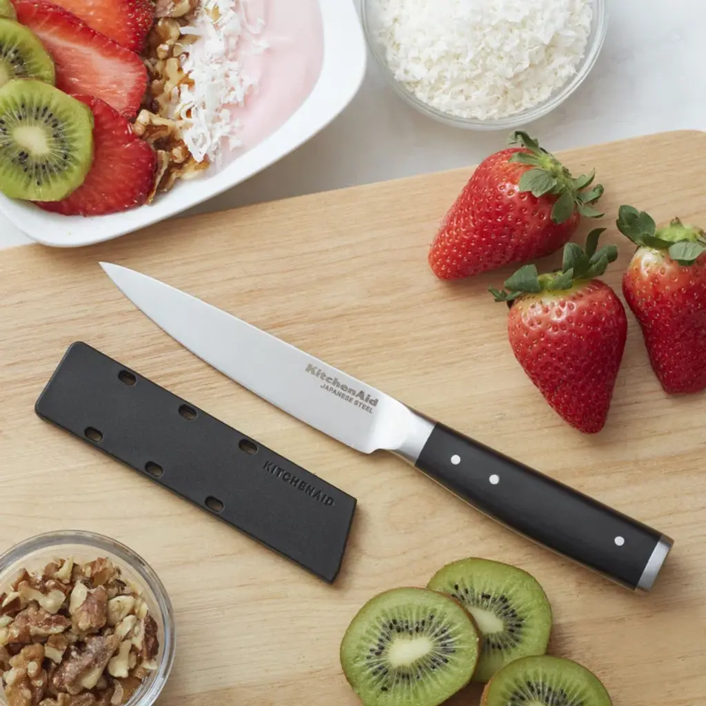 Kitchenaid® Gourmet Forged Triple Rivet Fine-Edge Utility Knife With Custom-Fit Blade Cover, 4.5-Inch, Black