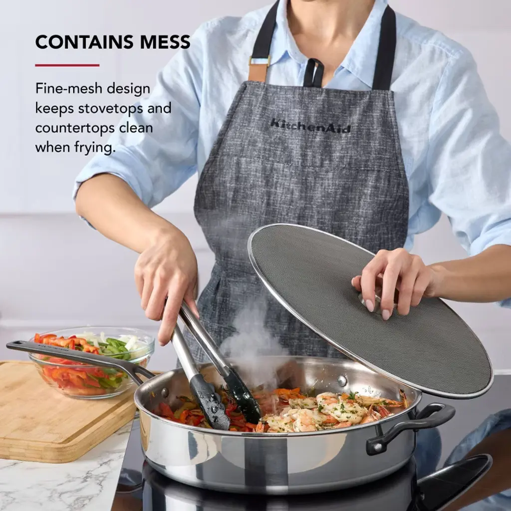 This product features a fine-mesh design that traps splatters to keep your stovetop and counters clean while frying. An activated carbon filter helps control unwanted cooking odors, while the mesh screen releases steam to prevent food from getting soggy, ensuring delicious results. Built with durable stainless steel, it’s made to withstand daily use and is also dishwasher safe for easy cleanup.
