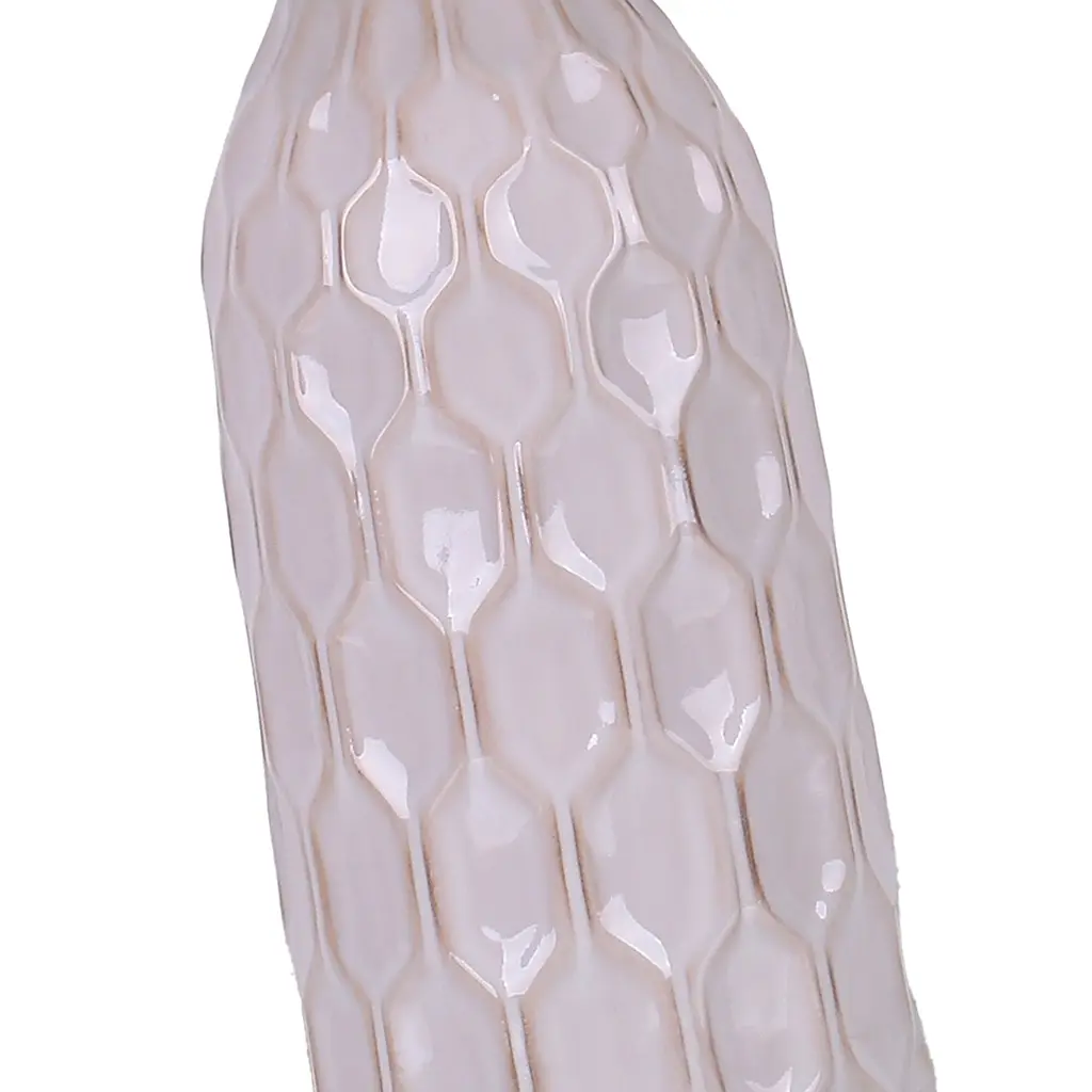 Modern Style Emanates From This Set Of Decorative Ceramic Bottles With An Embossed Geometric Pattern Finished In A Glossy White And Accented With Polished Nickel And Crystal Finials. Sizes: S-8x13x8, L-8x17x8