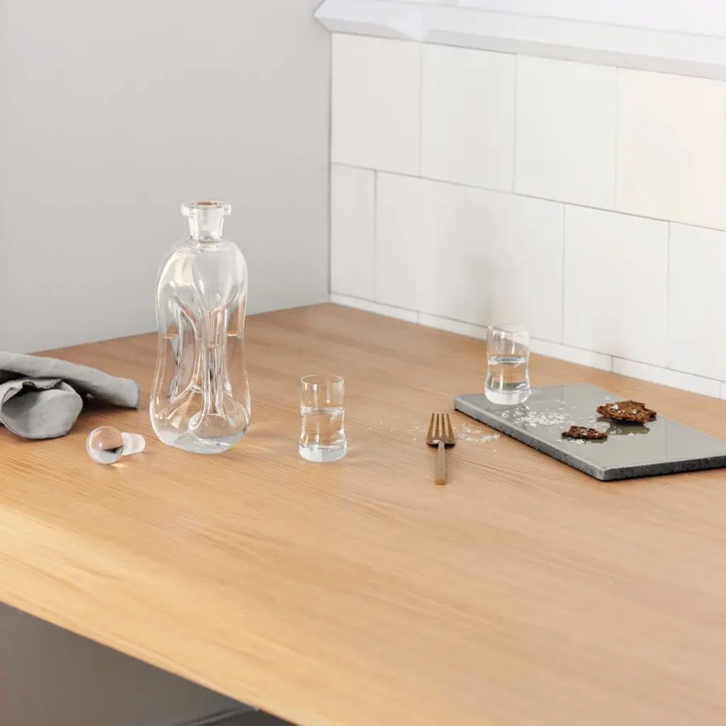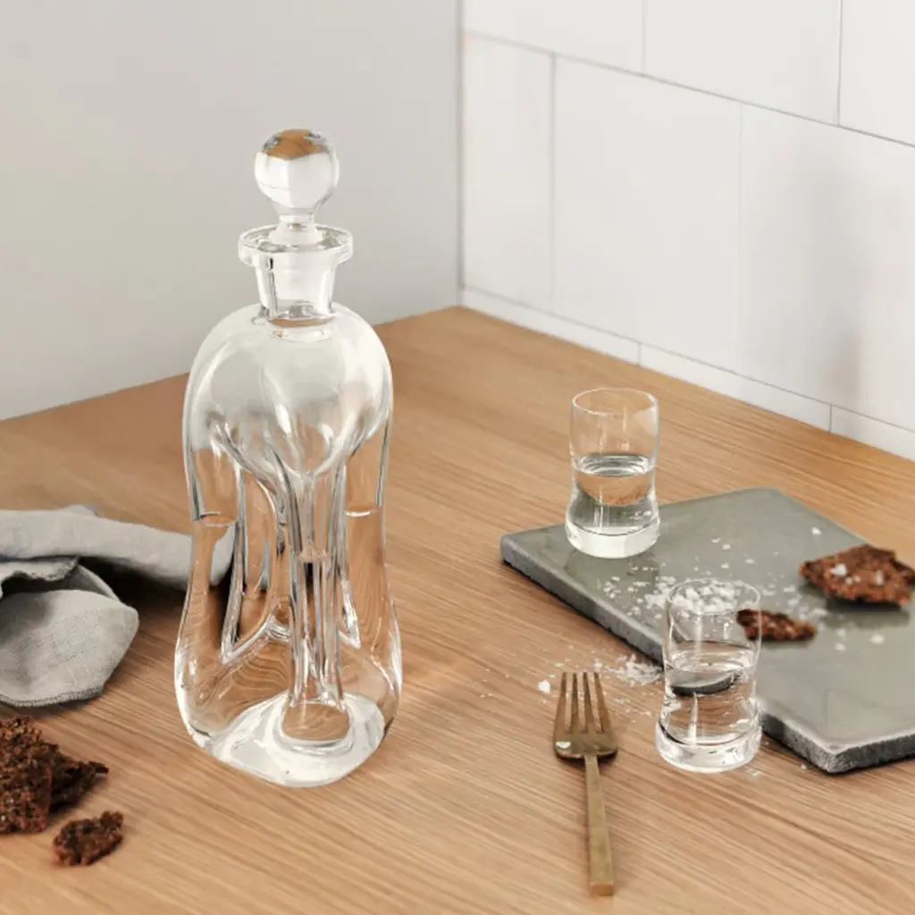 The spirits bottle has been synonymous with Holmegaard glass design for many years In fact, you could go so far as to say Holmegaard's bottle has iconic status The beautiful glass bottle is made of mouth blown transparent glass, which makes it particularly decorative with either whisky or cognac in it on the bar trolley The body of the Spirits bottle has three columns There are plenty of bottles on the market with four columns, but very few with three The very special glug-glugging sound when the liquid is poured from the bottle and encounters the air in the bottle's columns is the reason for its name in Danish: the “Kluk" bottle! A great gift idea for that very special occasion