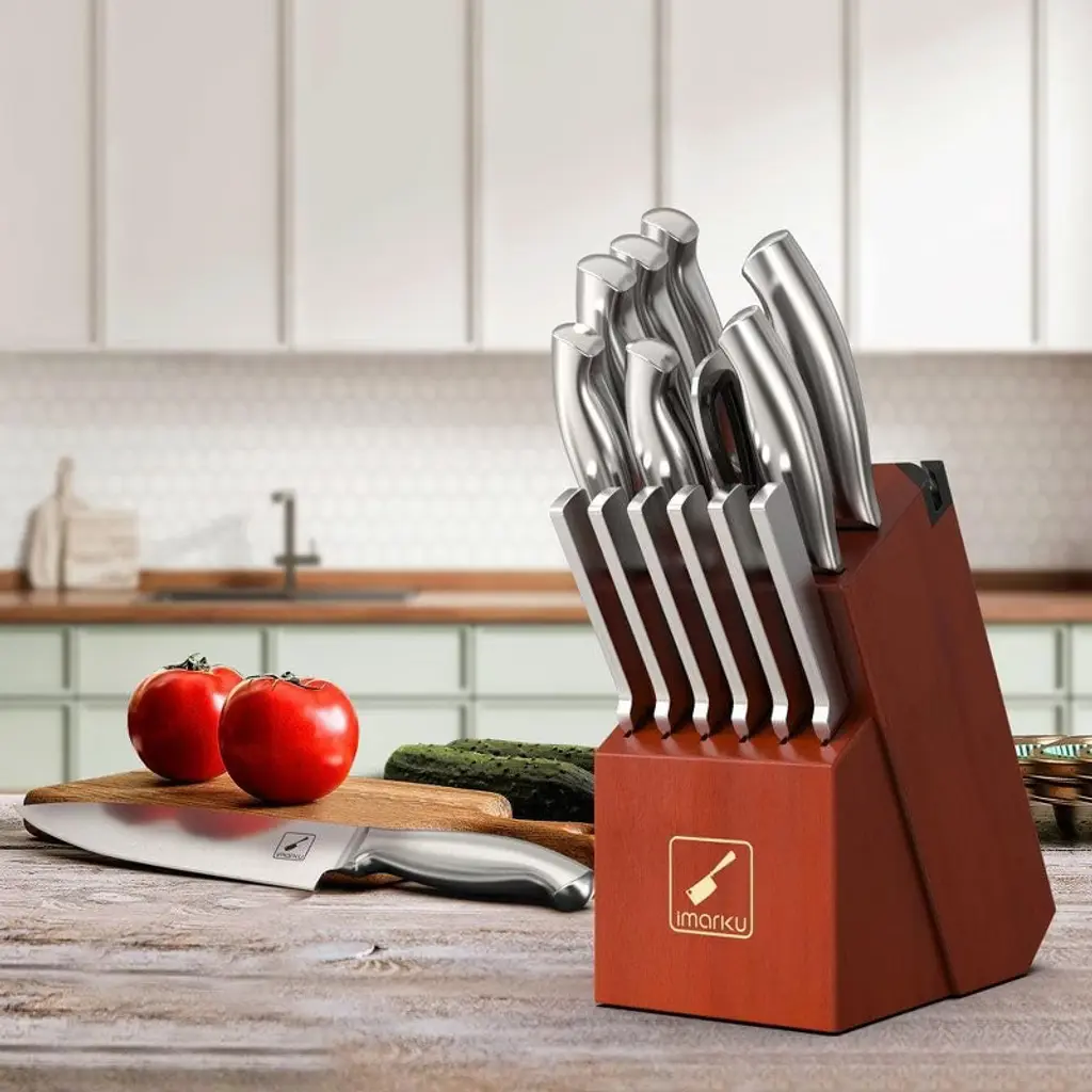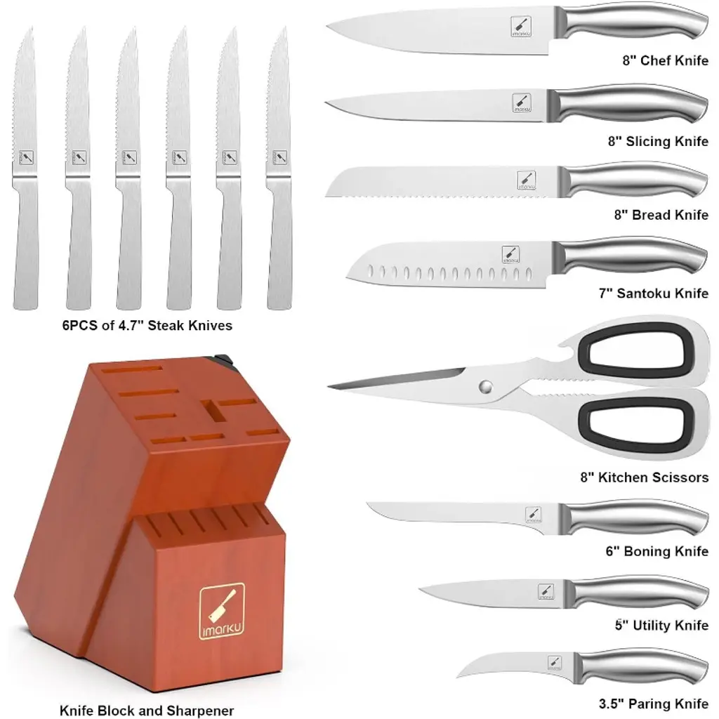 Knife Set, Imarku 15 Pieces German Stainless Steel Knife Block Set With Built-in Sharpener, Kitchen Knives Set With Block