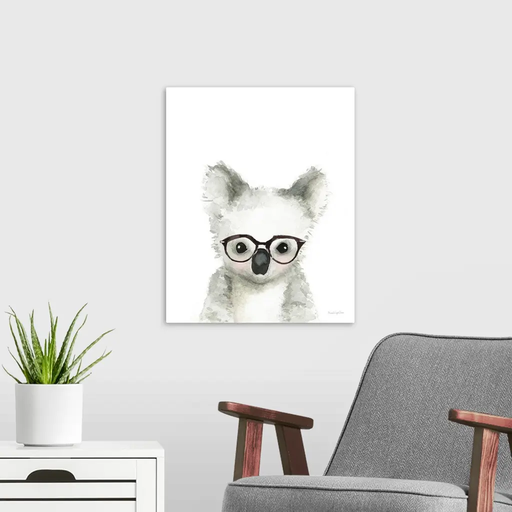 Koala in Glasses wall art for home and office decor. Discover canvas art prints, photos, mural, big canvas art and framed wall art in GreatBigCanvas.com's varied collections.