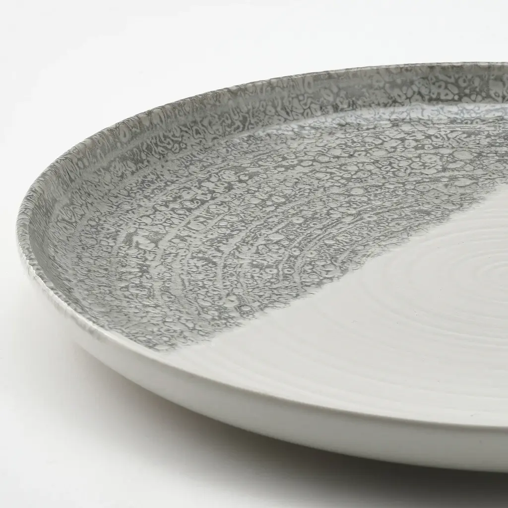 KRUSTISTEL Side plate - patterned/light gray 8 ". KRUSTISTEL plates have a rustic yet modern colorblock design that allows you to personalize the table in unexpected and playful ways.