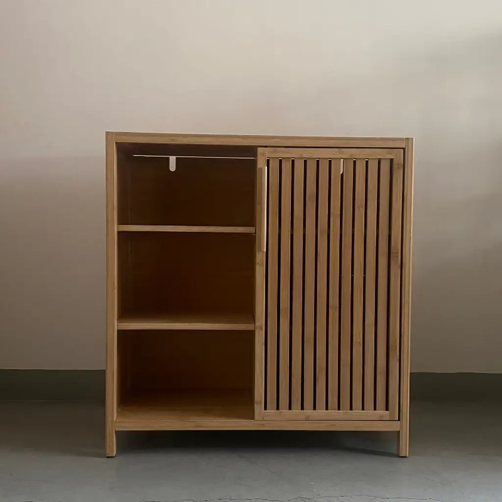 Ktmbdw Bathroom Cabinet Freestanding, Bamboo Storage Cabinet Floor Cupboard With Door And 3 Shelf For Small Spaces, Bathroom, Hallway, Natural