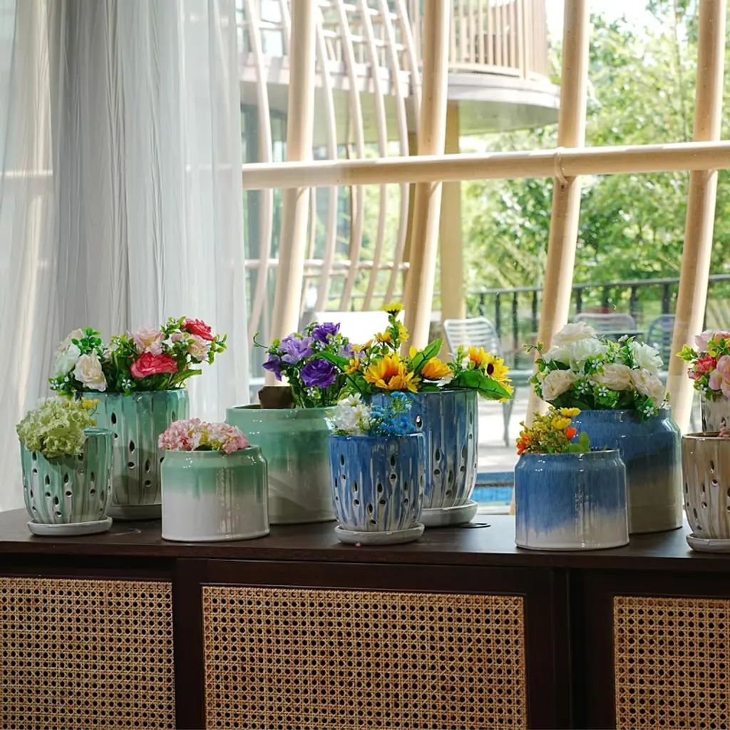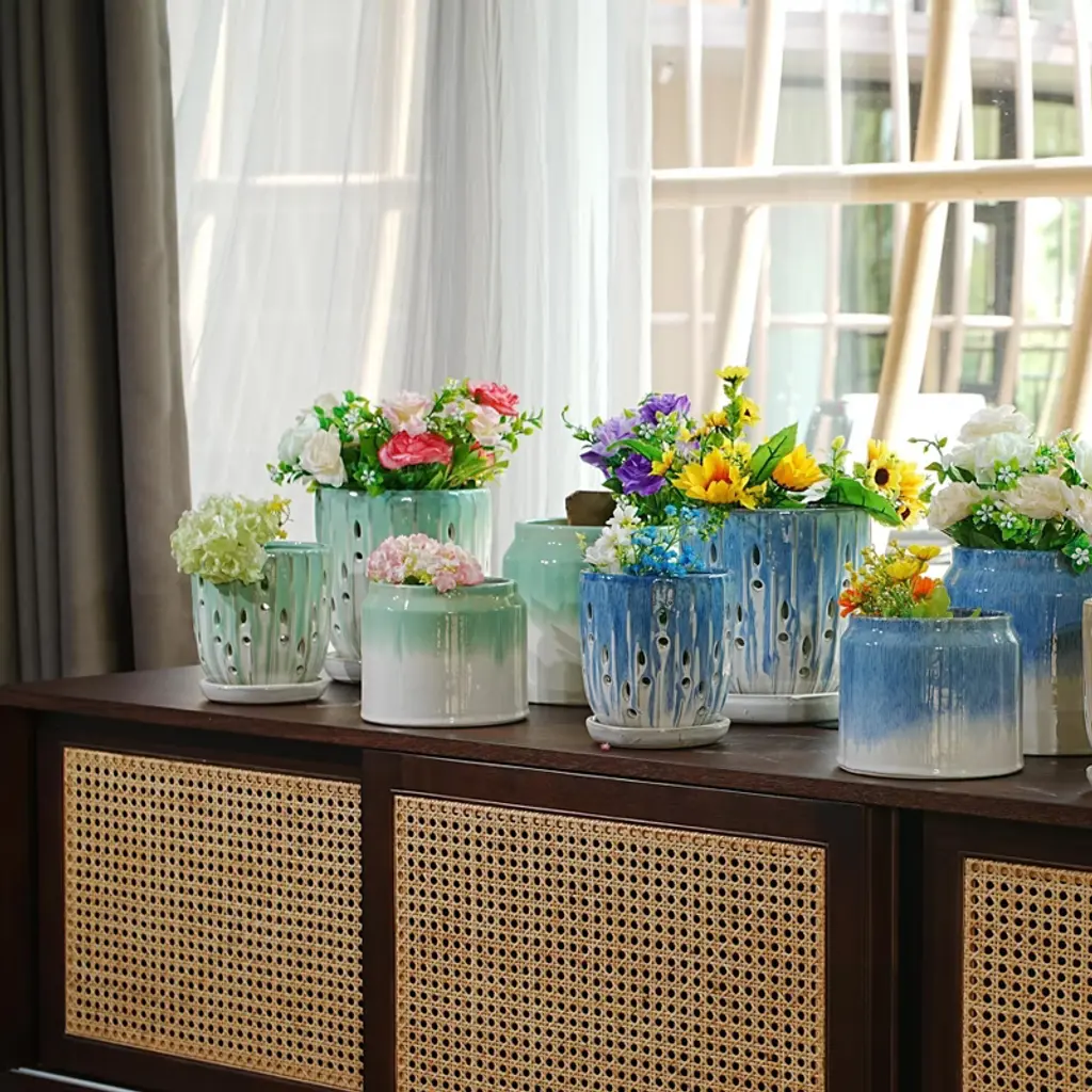 Add a touch of modern elegance to your home or garden with this stylish ceramic flowerpot. Featuring a glossy and antique striped finish, it blends effortlessly with both contemporary and traditional d¨¦cor. Crafted from durable, high-quality ceramic, its built to withstand the elements - perfect for both indoor and outdoor use. The built-in drainage hole promotes healthy root growth, making it ideal for flowers, herbs, or small greenery. With its sleek design and functional features, this planter is a chic and practical way to showcase your favorite plants anywhere.