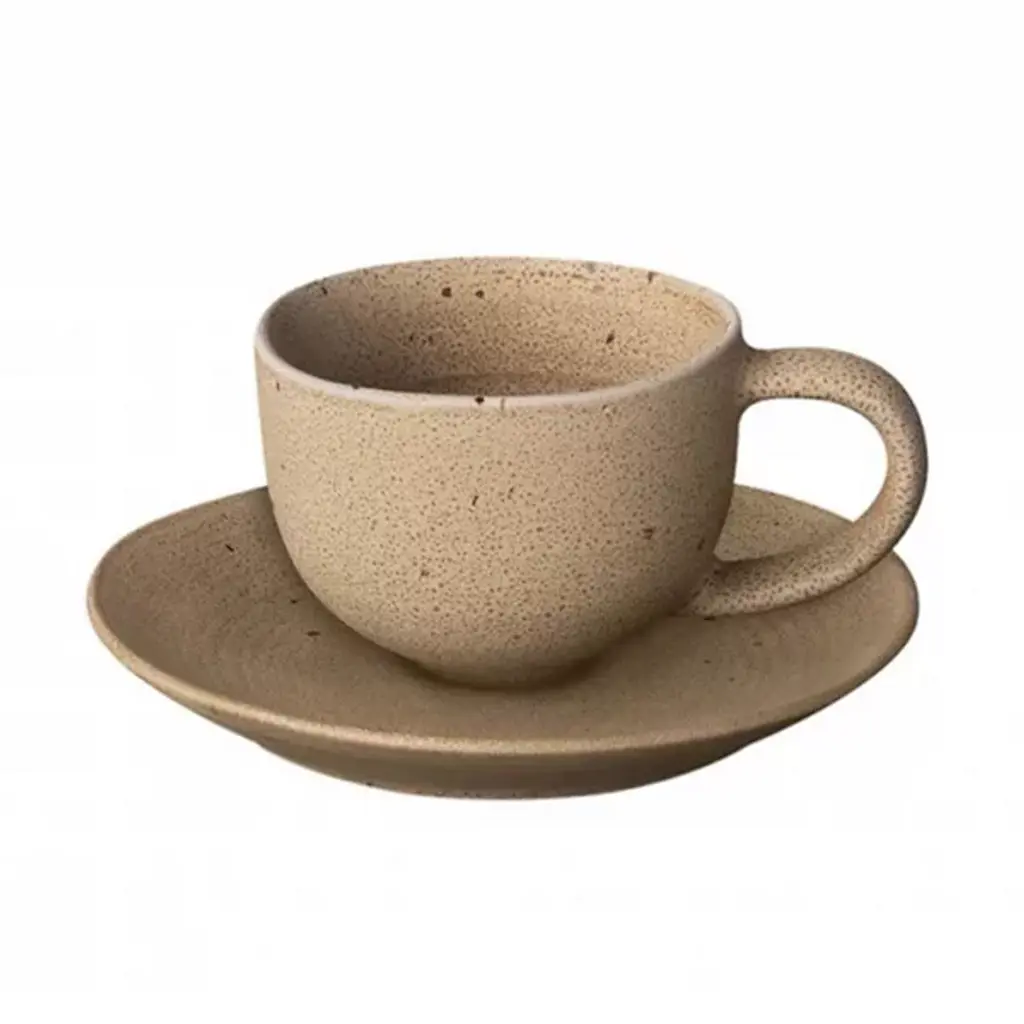 The KUMI Coffee Cups with Saucers, Set of 2 from Blomus brings a Japanese-inspired design to your morning ritual. Each cup, shaped by the reactive glazing process, bears unique markings that enhance its character over time. The set embraces the Wabi-Sabi philosophy, finding beauty in imperfection. Perfectly sized for espresso or a small coffee, these cups are both microwave and dishwasher-safe. The KUMI range, meaning "eternal beauty" in Japanese, offers mix-and-match potential for creating stunning table arrangements.