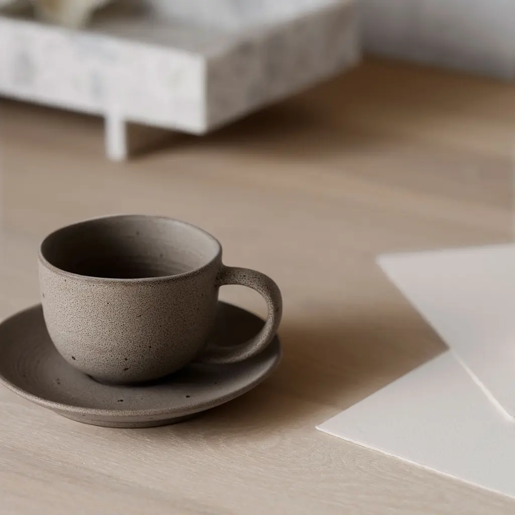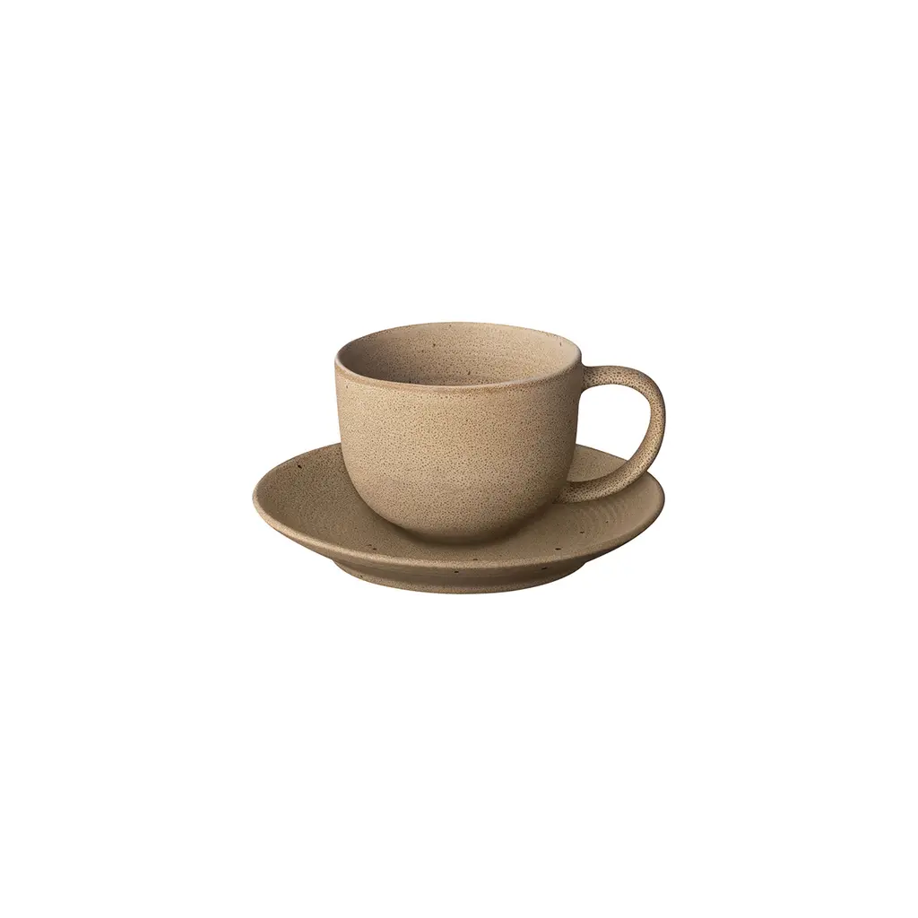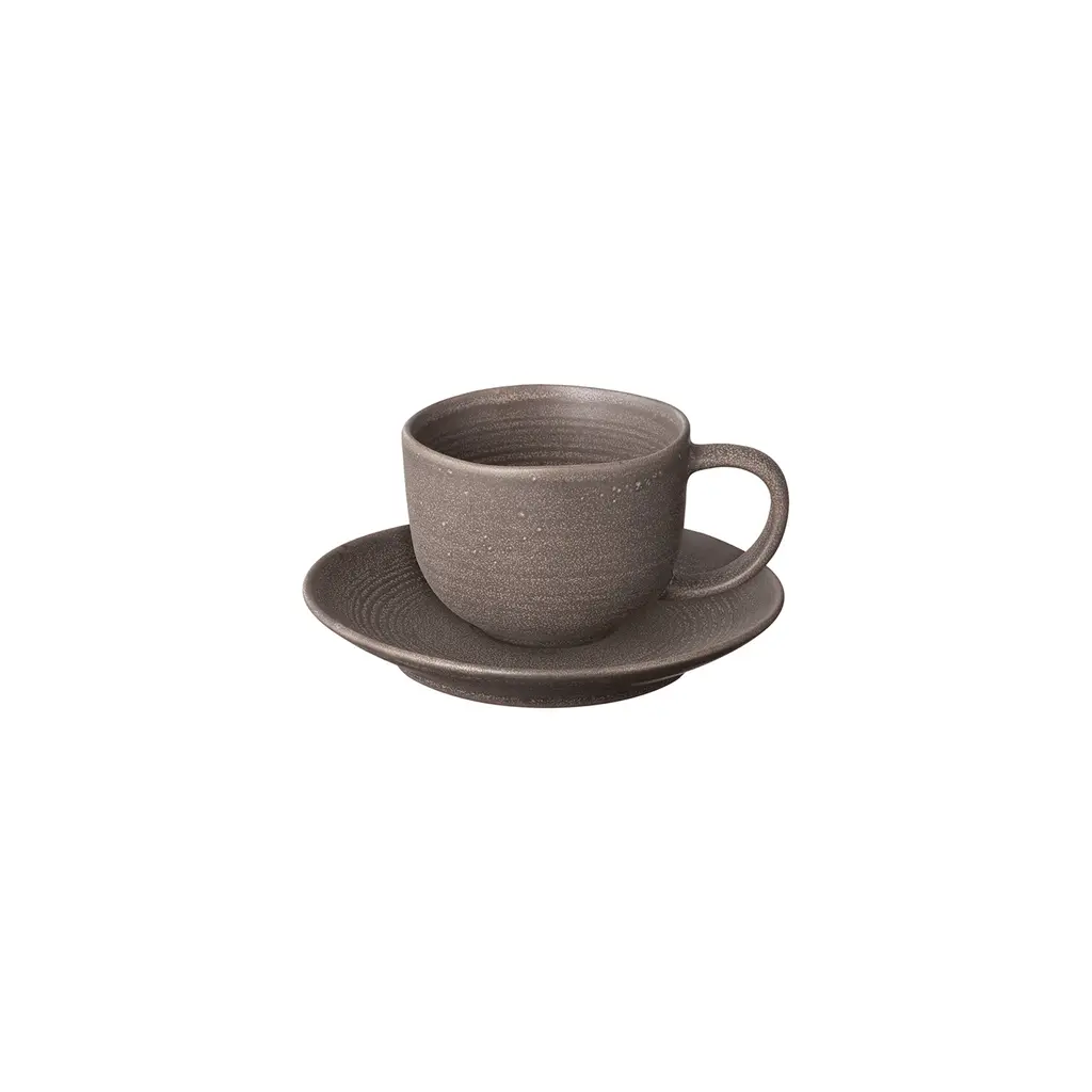 Kumi Stoneware Coffee Cups With Saucers, Set Of 2