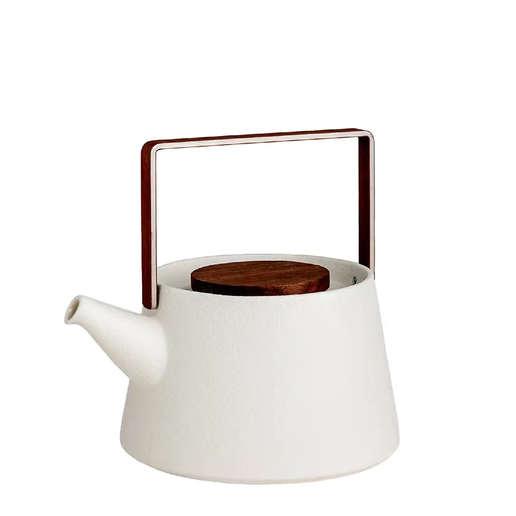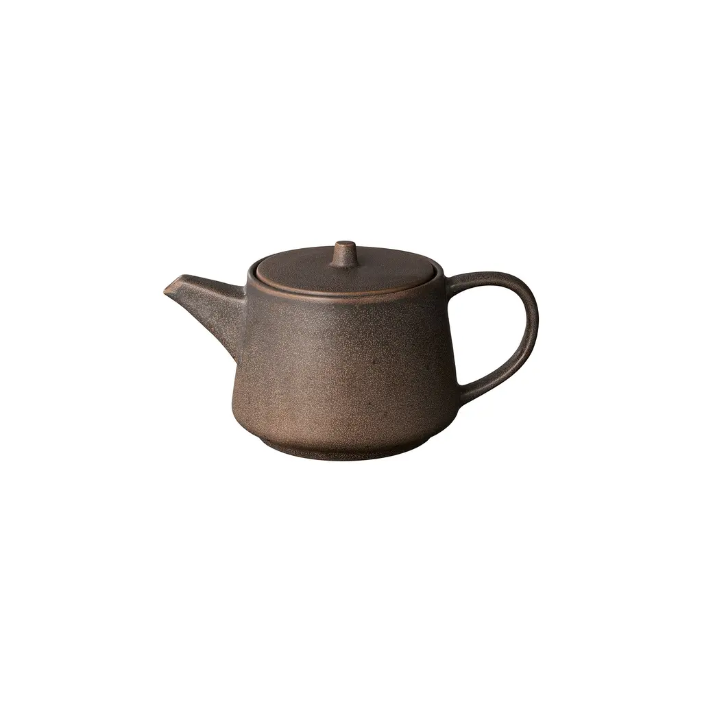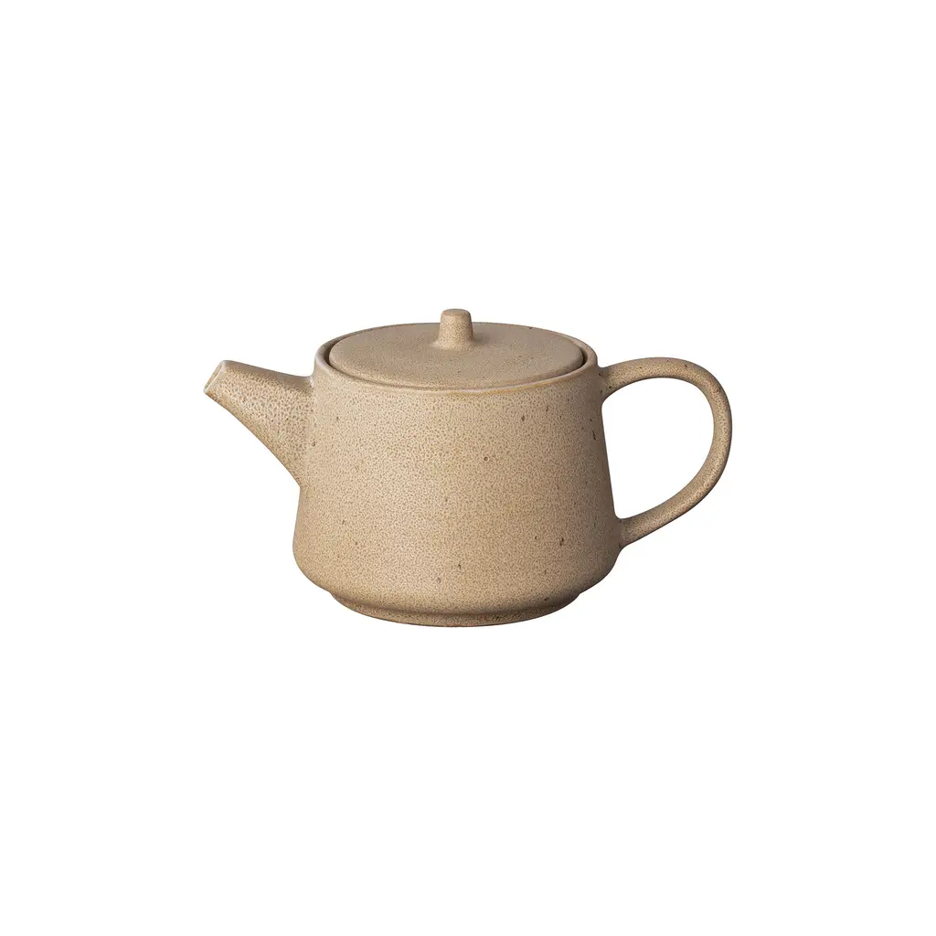 Serve tea with a beautiful teapot that will only get more charming with use. The Blomus Kumi collection celebrates the Japanese concept of wabi-sabi and timeless design. Minimalist and warm, the Kumi Stoneware Teapot features the range’s signature speckled pattern, natural colors, and tactile surface. Made from ceramic, each teapot has a unique texture thanks to the Japanese reactive glaze that comes out differently with each firing in the kiln. Both the darker and lighter versions feature distinctive dots and slight variations that explore the allure of imperfect beauty. This teapot has a tapered spout and a curved handle for easy pouring. A lid with a knob-like handle completes the design. The Blomus Kumi Stoneware Teapot holds 34 fluid ounces or 1 liter.