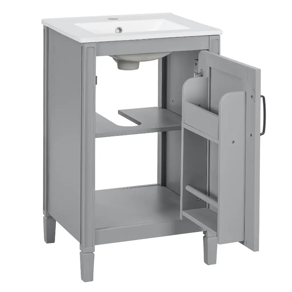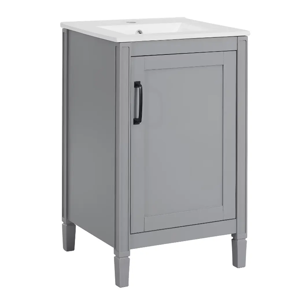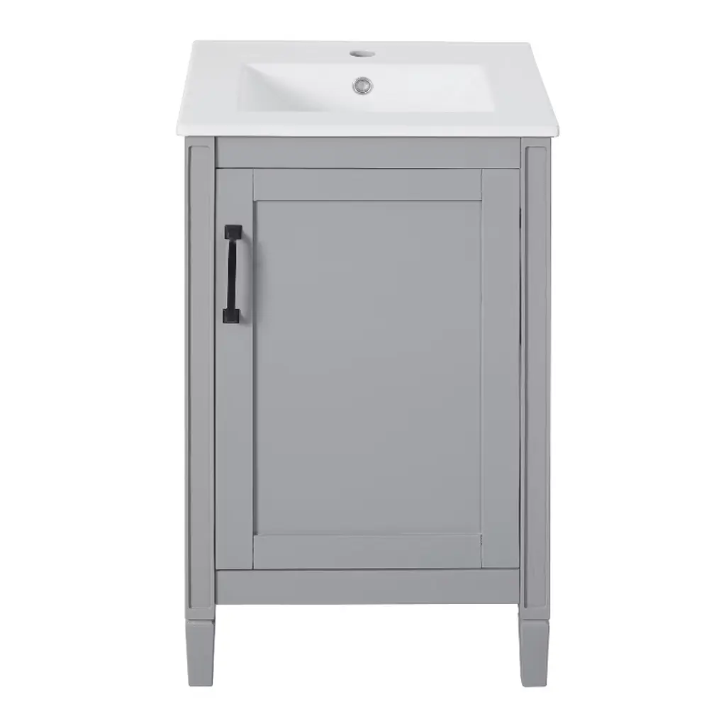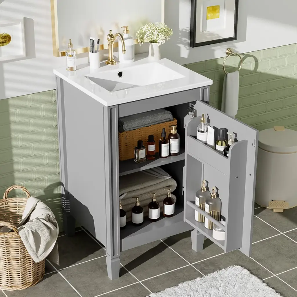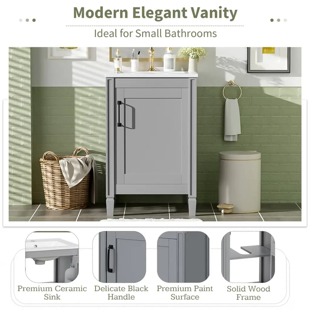 Kwpzqeb 20" Bathroom Vanity With Ceramic Sink, Modern Freestanding Vanity With Doors & Shelf, Floor Storage Cupboard With Racks For Small Spaces, Gray