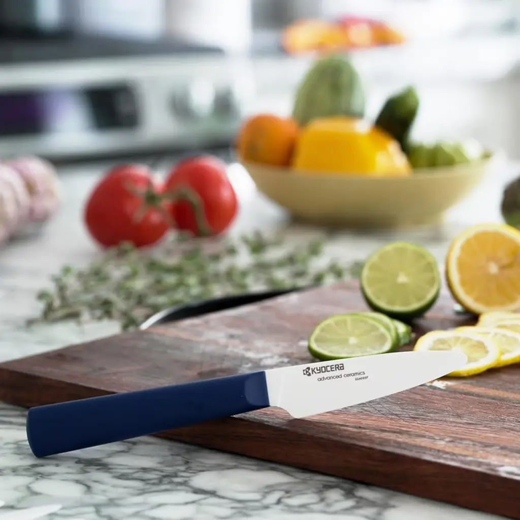 Kyocera Innovationwhite® 3-inch Ceramic Paring Knife, White Blade With Non-slip Blue Handle