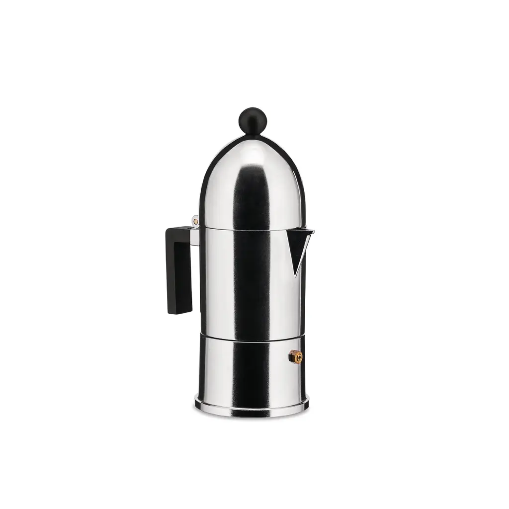 Introduced in 1988 by the visionary Aldo Rossi, the La Cupola espresso moka pot swiftly captured the hearts of Italy, establishing itself as an enduring classic. Crafted with accessibility in mind, this striking coffee maker not only serves an exceptional espresso but also stands as a piece of mini table architecture with its distinctive dome-shaped lid, mirroring the meaning of its name in Italian. Decades and countless aromatic brews later, La Cupola remains a testament to avant-garde industrial design, gracing the countertops of modern kitchens and embodying the essence of stylish functionality.