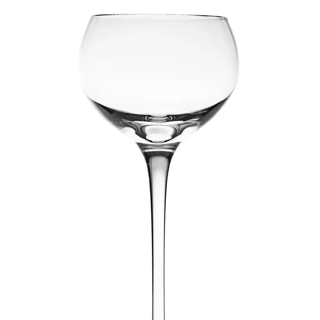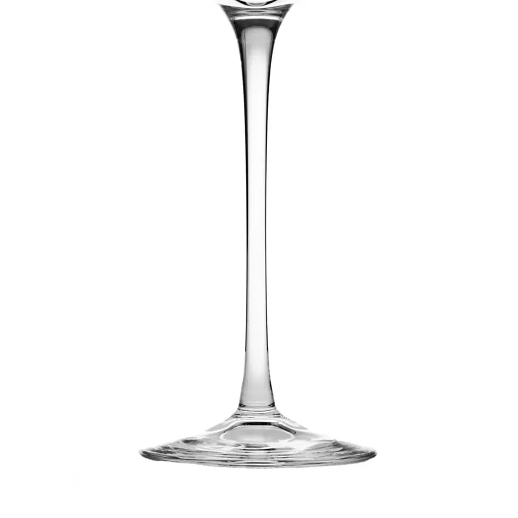 A set of 6 delicate and elegant thick crystal glasses with a long stem, conceived for "grappa", the typically-Italian distilled pomace spirit. Designed by Marcello Mantengoli, this Italian classic adds a dash of class to the dinner table.