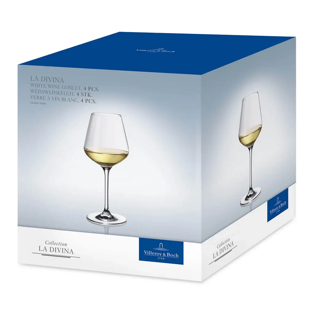 Tailored for sophisticated tastes, the Villeroy & Boch La Divina glassware collection is defined by its sleek lines and exquisite design. Rounded shapes allow the bouquets of wines and whiskeys to develop and beautifully showcase sparkling champagnes as well as other drinks.