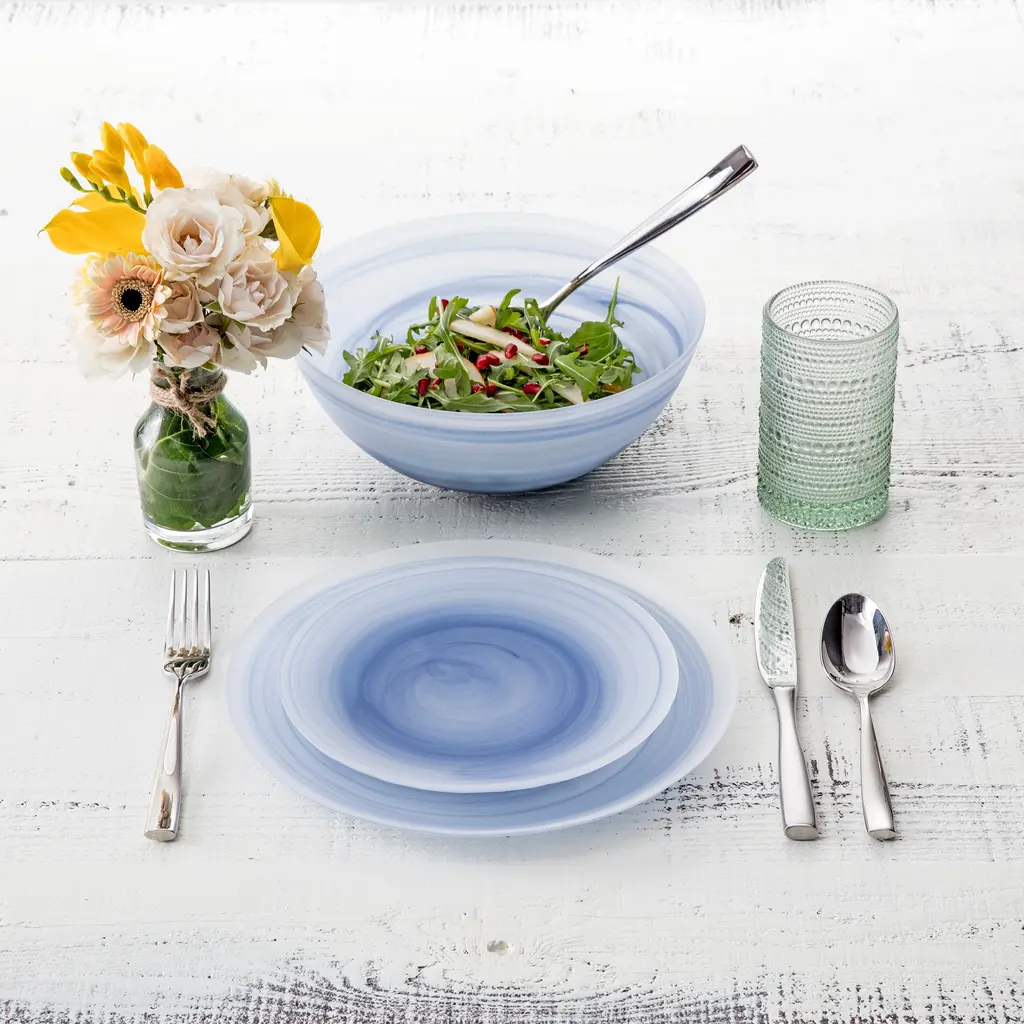 Elevate your dining experience with the serene allure of Fortressa's La Jolla collection. Evoking the look of sea glass, each piece is uniquely different and features whirlpools that swirl around a translucent surface. Made of soda-lime-silica with magnesium oxide and alumina for durability, Fortessa Glass brings beauty to today's tablescapes.