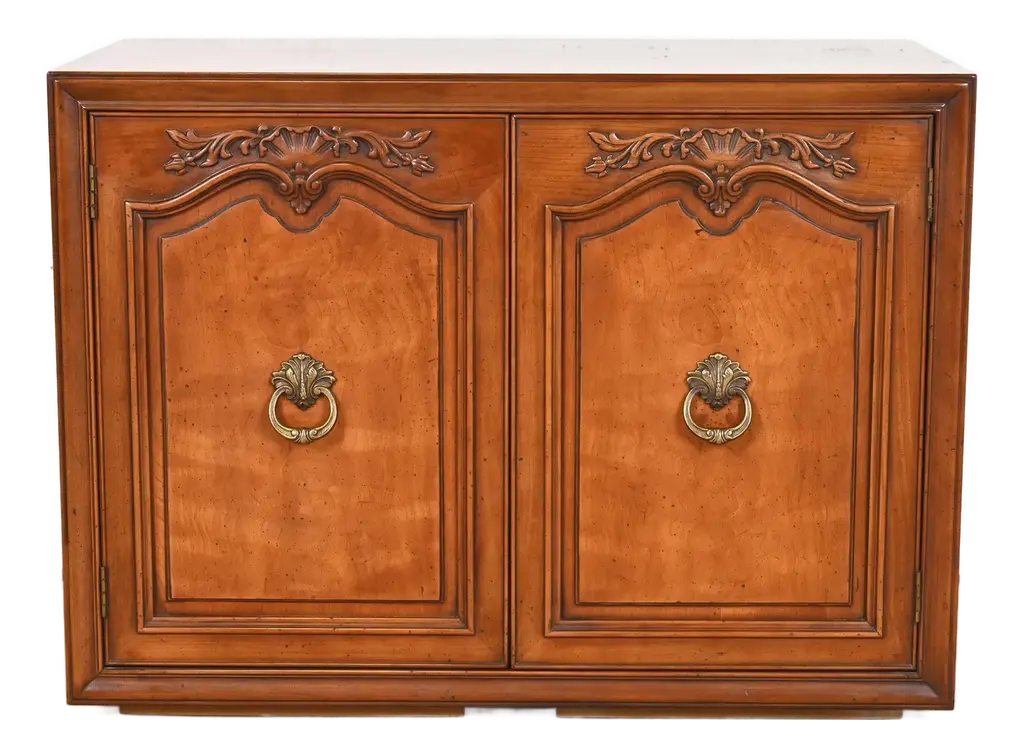 493144-WAL Small narrow planked walnut cabinet with light distress, having two drawers above twin doors and a shelf within, engaged turned columns to the sides raised on turned baluster legs. After a Victorian design of c.1870.