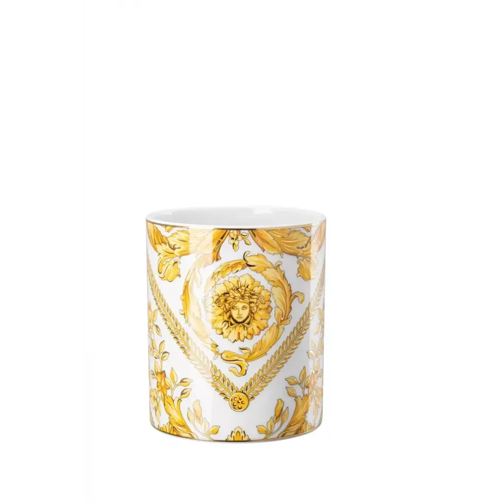 The majestic marble staircase of the Palazzo Versace in Milan is the inspiration behind the opulent new “La Scala del Palazzo” design. Bold yet refined architectural elements are cut through with shimmering metallic spirals, unveiling the hidden beauty and the legacy of the Maison’s historical building.