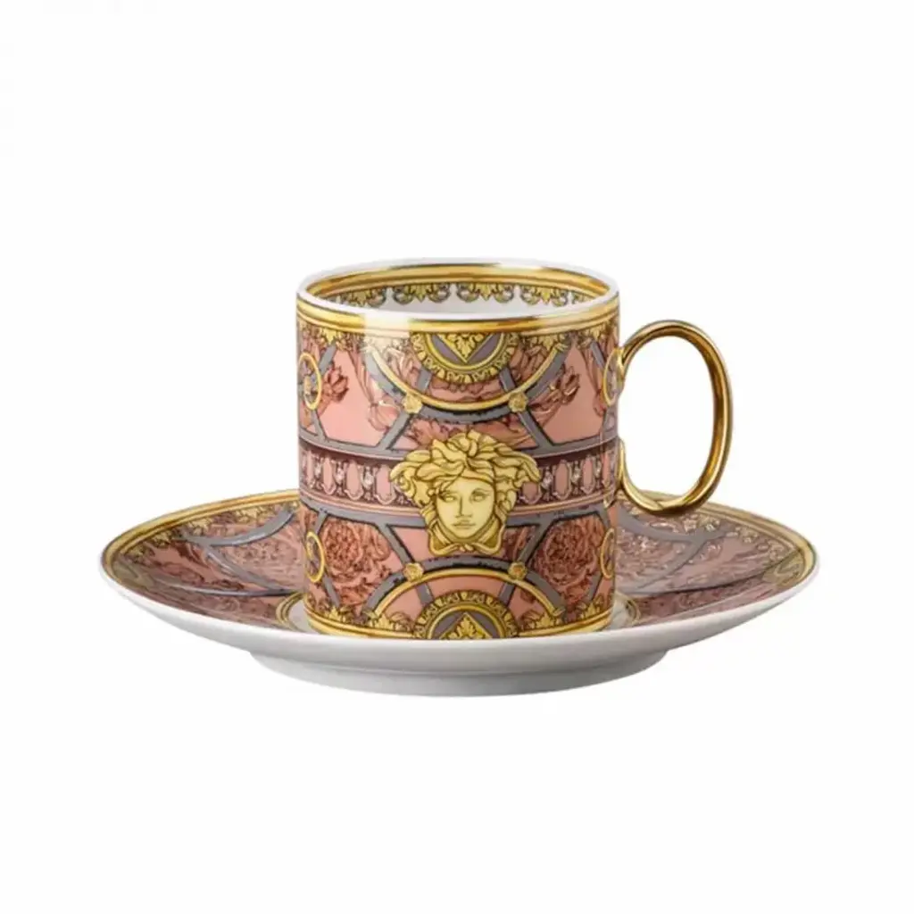 The majestic marble staircase of the Palazzo Versace in Milan is the inspiration behind the opulent new “La Scala del Palazzo” design. Bold yet refined architectural elements are cut through with shimmering metallic spirals, unveiling the hidden beauty and the legacy of the Maison’s historical building.