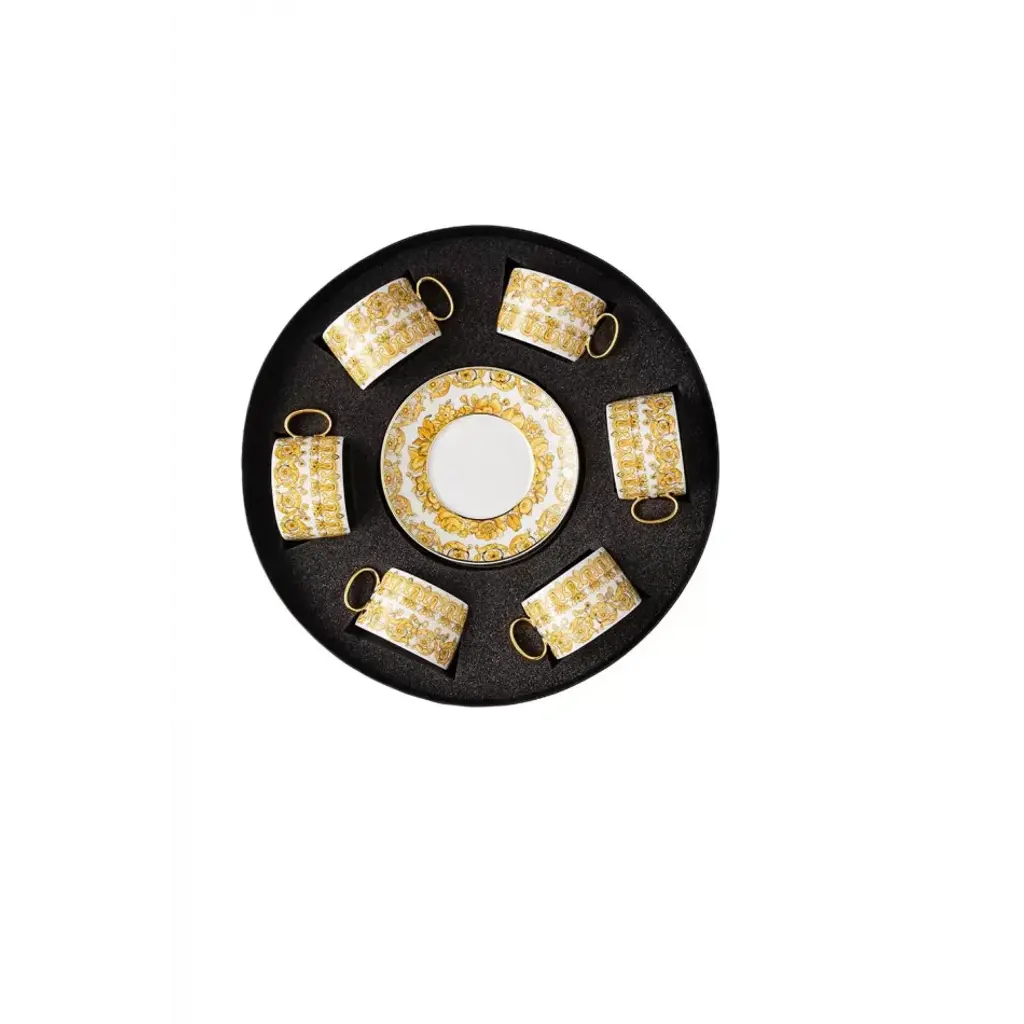 The majestic marble staircase of the Palazzo Versace in Milan is the inspiration behind the opulent new “La Scala del Palazzo” design. Bold yet refined architectural elements are cut through with shimmering metallic spirals, unveiling the hidden beauty and the legacy of the Maison’s historical building.