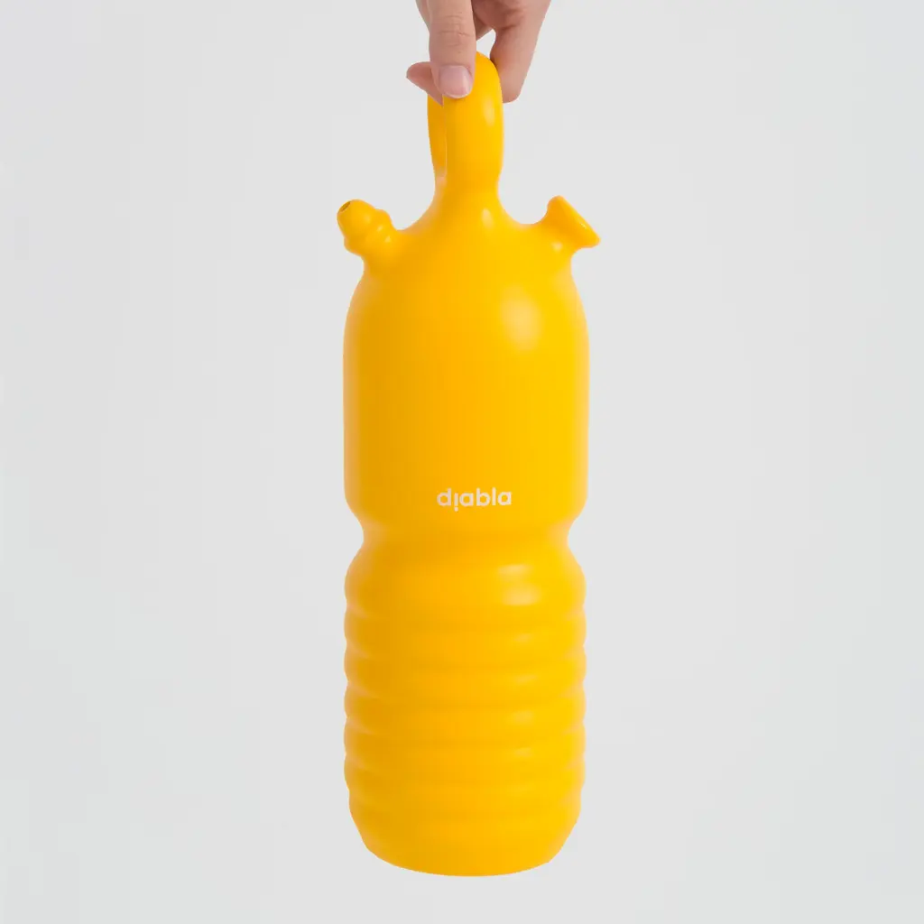 At Diabla, we’re fascinated by ultra modern things but also by tradition, as we know it can provide the inspiration for innovative ideas, and this design is the confirmation of that. La Siesta came about as a fusion between the shape of a plastic bottle and that of a Botijo, a traditional earthenware vessel that is used as a container for keeping water cool without the need for refrigeration, and as a water jug. An iconic object that conveys the spirit of the Mediterranean, humorously reconsidered by its creators: Raky Martínez, Alberto Martínez and Héctor Serrano. La Siesta is a fun design because, like the traditional earthenware drinking jug, in order to drink from it you have to use the spout (the outlet with the smallest hole), raising the jug and tilting it towards your head and catching the stream of water in the air. So its presence will make any meal or get-together much more fun. You can be sure of it. Features