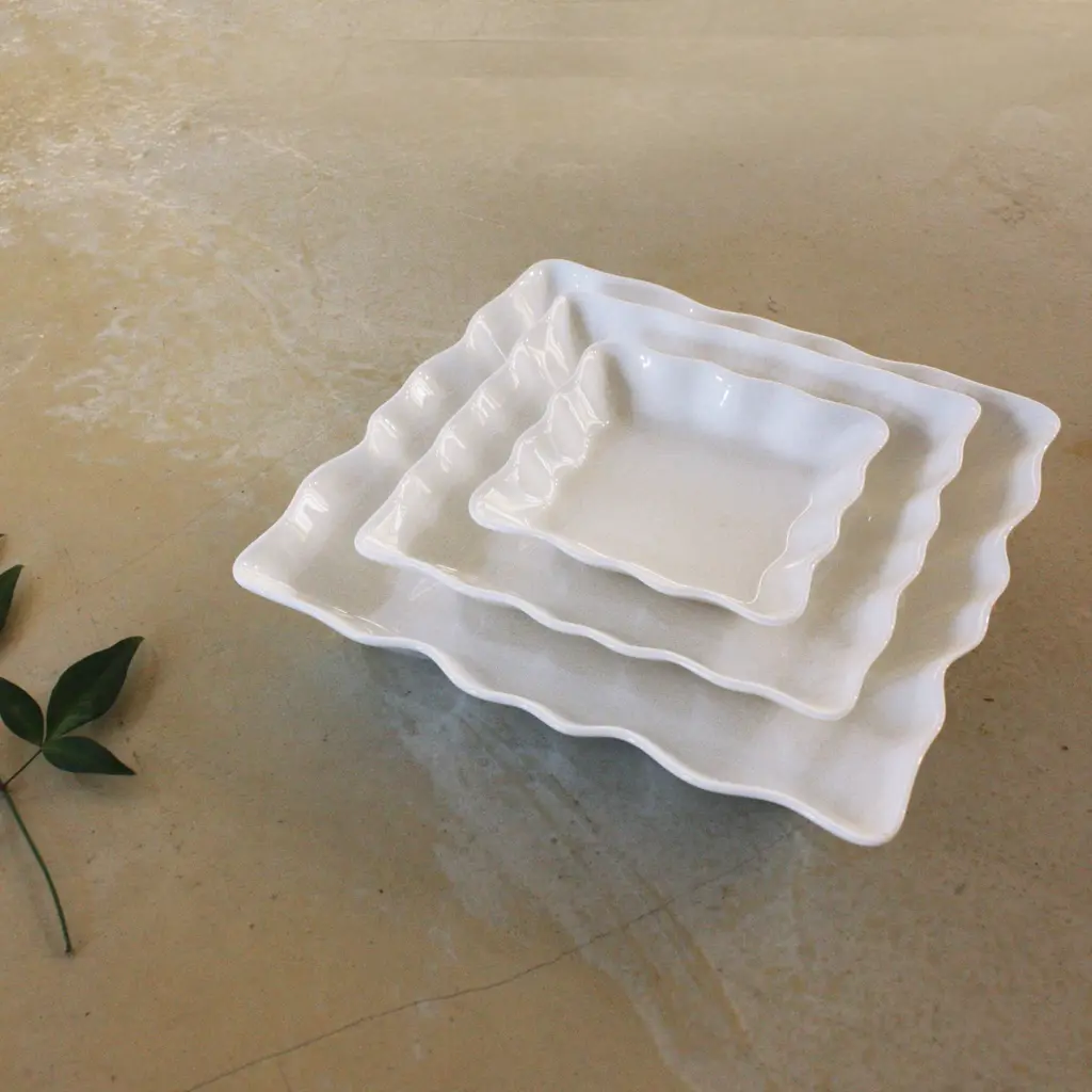 This Lace Square Plate is available in small, medium, and large. It is ideal for serving your favorite meals, snacks, or as a decorative plate to add to your dinnerware collection.Item contains one plate.