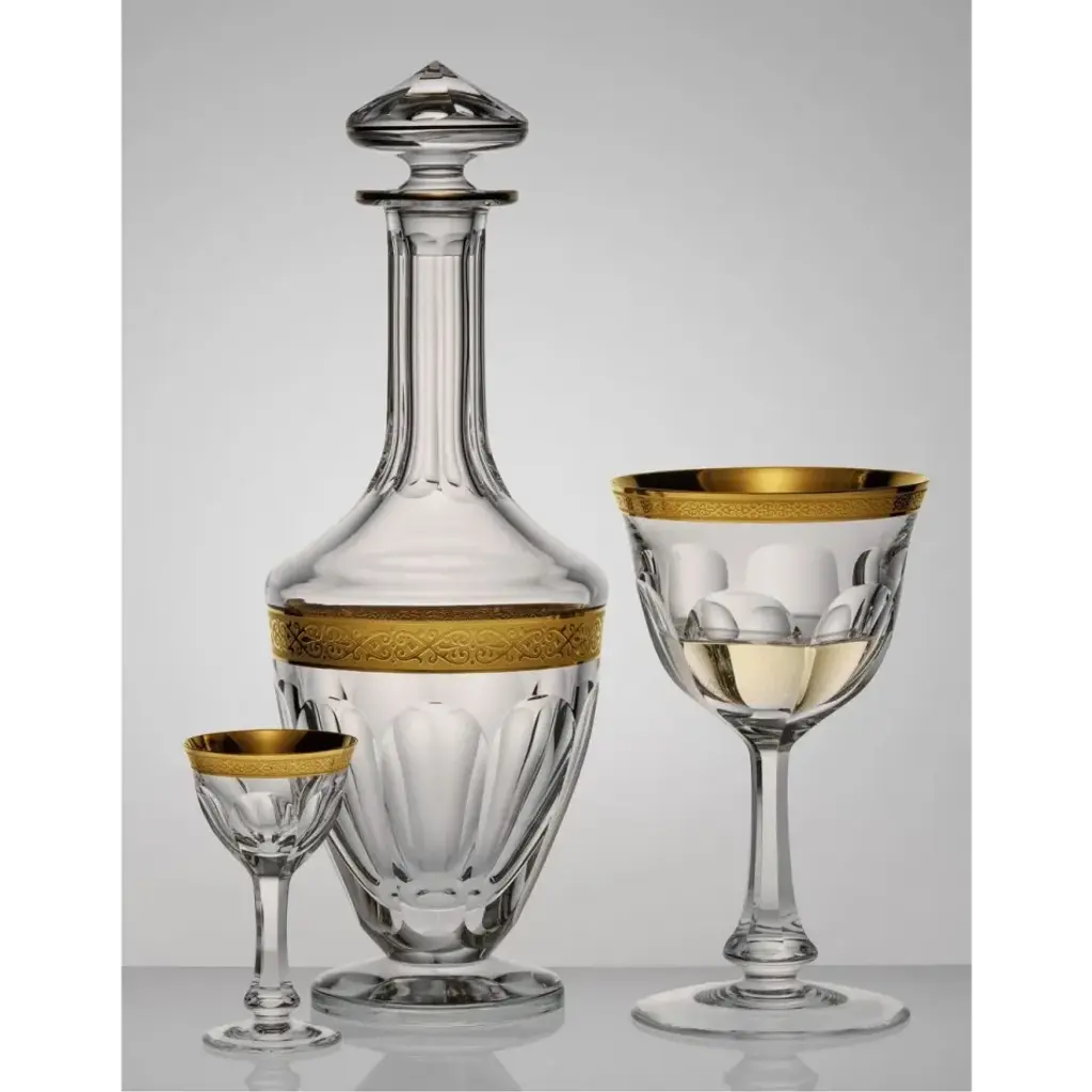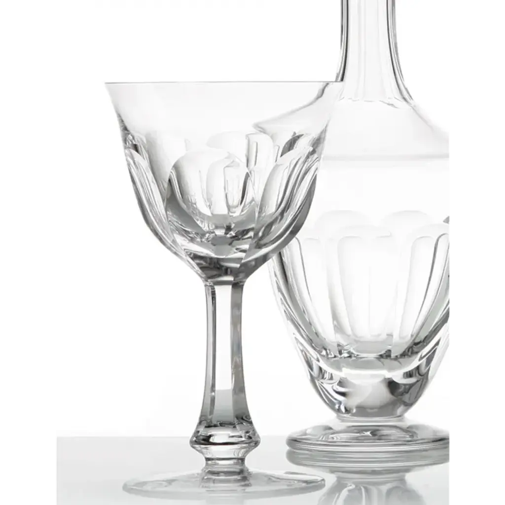 Since 1934, the Lady Hamilton drinkware collection has been popular with the most discerning customers, people like Moroccan Sultan Mohammed V, Iranian Shah Muhammad Rezá Pahlaví and the Maharaja of Travancore. The hand-cut Czech crystal proudly bears six semi-circular facets of the papal cut. The crystal carafe perfectly complements the set of wine, whisky or liqueur glasses in the same design. Founded in 1857, Moser boasts a long tradition of superior artistic and technical standards in lead-free crystal. The quality of the crystal and perfection of Moser's hand cutting, engraving, gilding and brilliant colors are unsurpassed by any contemporary glass or crystal company in the world. Created by Ludwig Moser & Sons, the line originated as an engraving studio in the spa town of Karlsbad, located in Bohemia (now the Czech Republic), a region with deep roots in superior glass-making. During the late 19th and early 20th centuries, Moser developed its now famous technically perfect crystal production, employing a unique formula for producing a substance as hard as rock and as brilliant as lead crystal - but without using a trace of lead. This composition is very suitable for Moser's marvelous engravings, is ecologically sound and remains free of all concerns associated with lead. Moser's innovative techniques in cutting, engraving and coloring quickly won the line great acclaim at many prestigious international art exhibitions. Soon Moser became the proud possession of royalty, heads of state and well-known personalities throughout the world, an esteemed reputation that has held fast and continues to grow now in the 21st century. Today, Moser produces a wide range of stem and barware, holloware, accessories, giftware and art glass, all showcasing the superior quality, innovation and remarkable artistic expression for which the line has long been recognized.