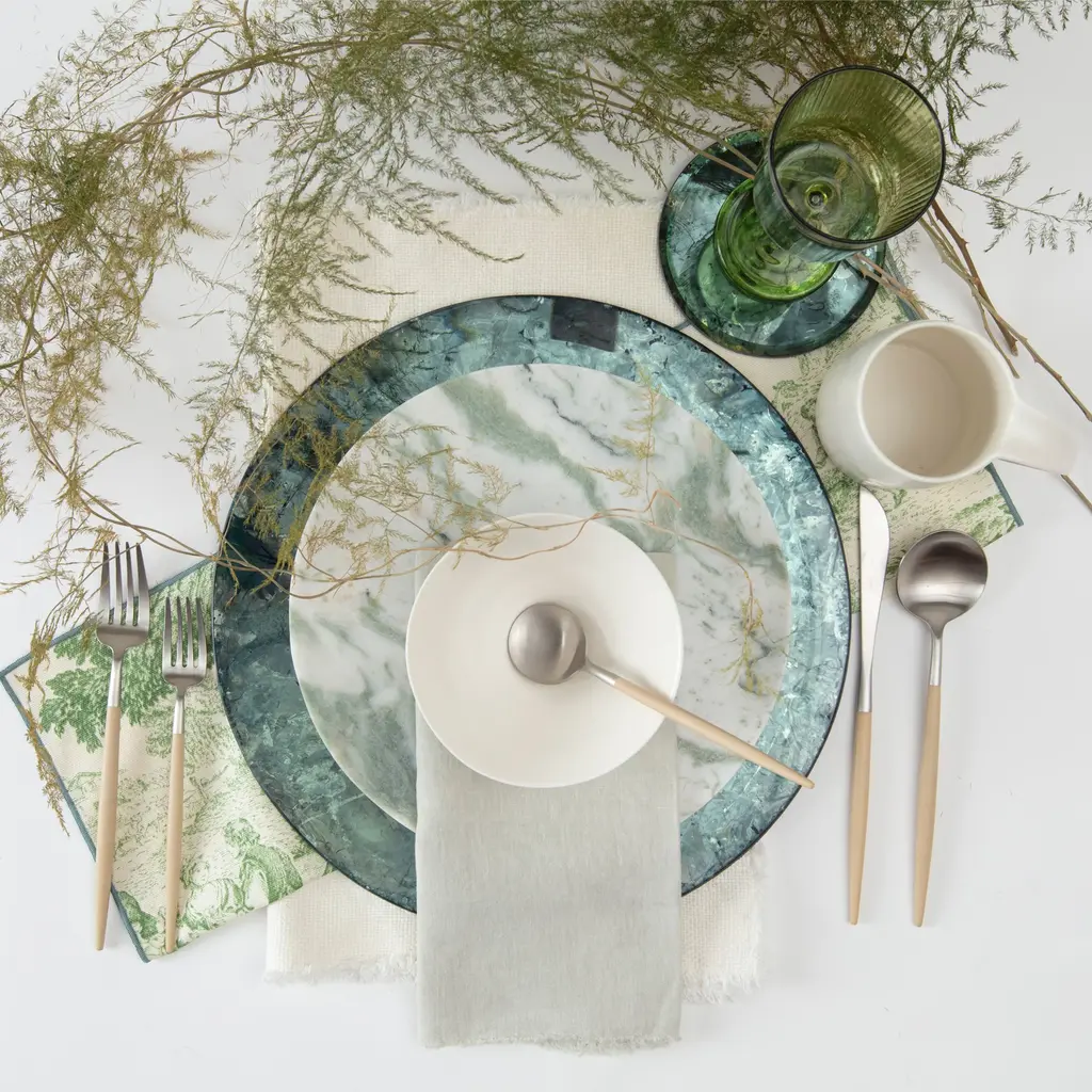 This Lady Onyx Plate is just as durable as it is dazzling, featuring rich streaks of green and pink intermingling to create a subtly vivacious elegance unlike any other. Ethically hand-crafted in small batches, our Lady Onyx marble dinnerware collection is sourced from Agra, home of the Taj Mahal otherwise known as one of the world’s great marble masterpieces. Each marble plate contains natural tonal striations and color variations making it truly one-of-a-kind. Please Note: The actual color of the marble varies from item to item and will not be identical to the product image shown here.