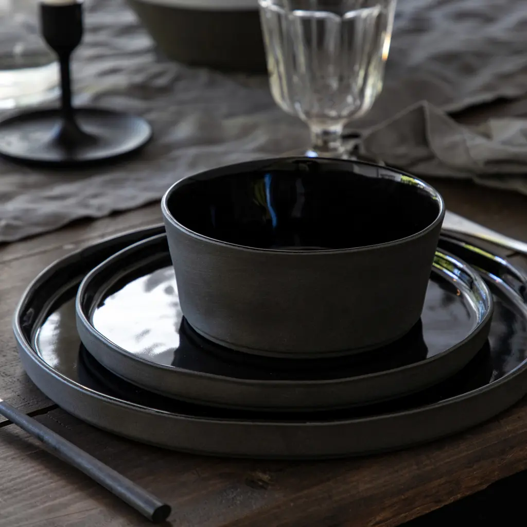 Costa Nova's Lagoa Eco Gris Collection features a handcrafted artisanal design with a matte exterior and glazed interior for a modern, contrasting finish. Made from Eco-Gres®, a proprietary clay composed of sustainable, recycled materials.