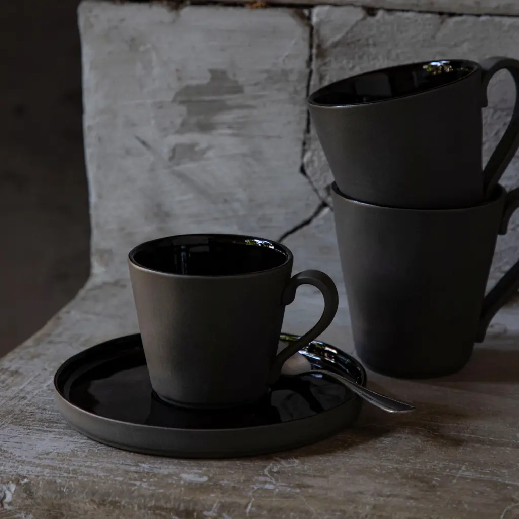 Costa Nova's Lagoa Eco Gris Collection features a handcrafted artisanal design with a matte exterior and glazed interior for a modern, contrasting finish. Made from Eco-Gres®, a proprietary clay composed of sustainable, recycled materials.