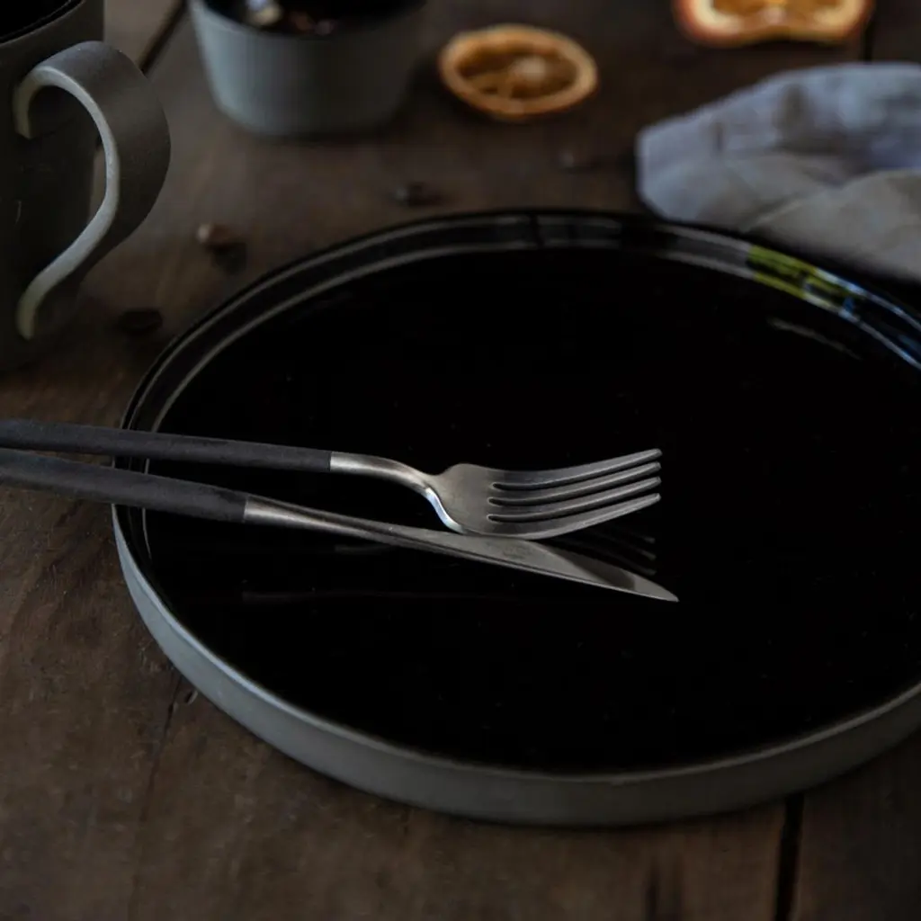 Lagoa Ecogres Modern Black Stoneware Dinner Plate - Set Of 4