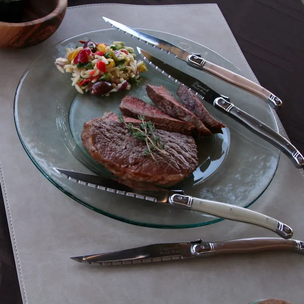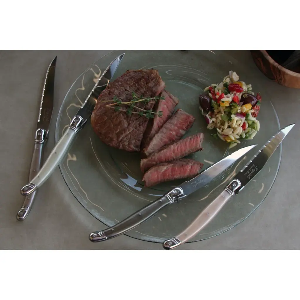 This traditional and elegant design with the iconic three-ribbing curved handle and bee emblem is comfortable to hold and perfectly balanced. The steak knives have attractive handles and blades that cut effortlessly.