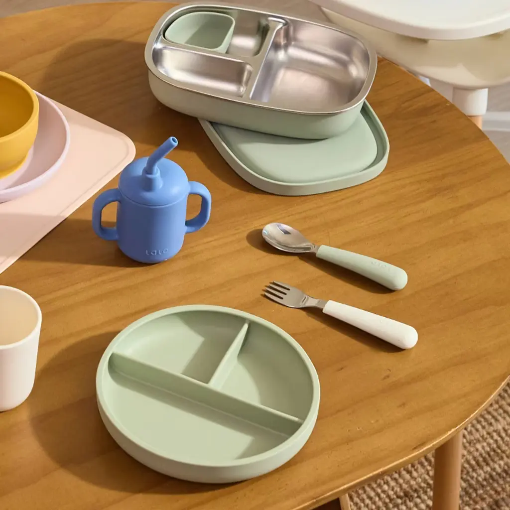 Designed for little hands and big bites! The Lalo Utensil Set helps growing eaters master mealtime with an ergonomic, easy-to-grip design. Made from non-toxic, BPA-free silicone and stainless steel, this fork and spoon combo is safe, durable, and just the right size for independent eating. Plus, they’re dishwasher-safe for stress-free cleanup—because mealtime should be fun, not fussy!