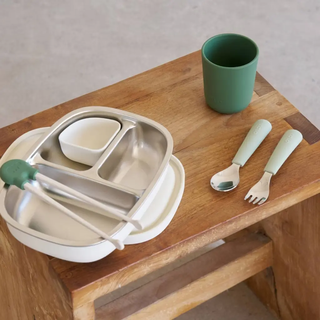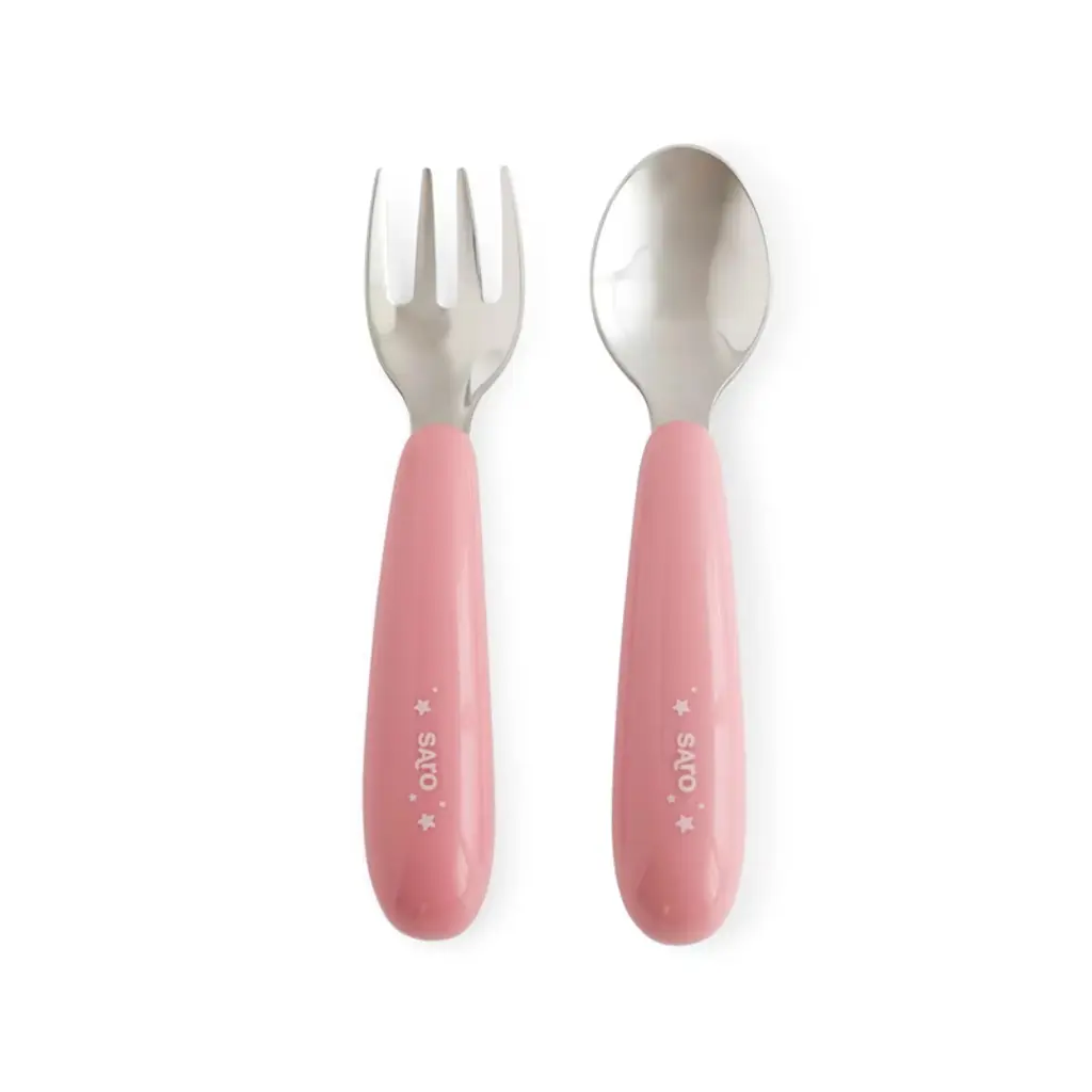 Lalo 2Pc Stainless Steel Fork + Spoon Utensils Set - Sage