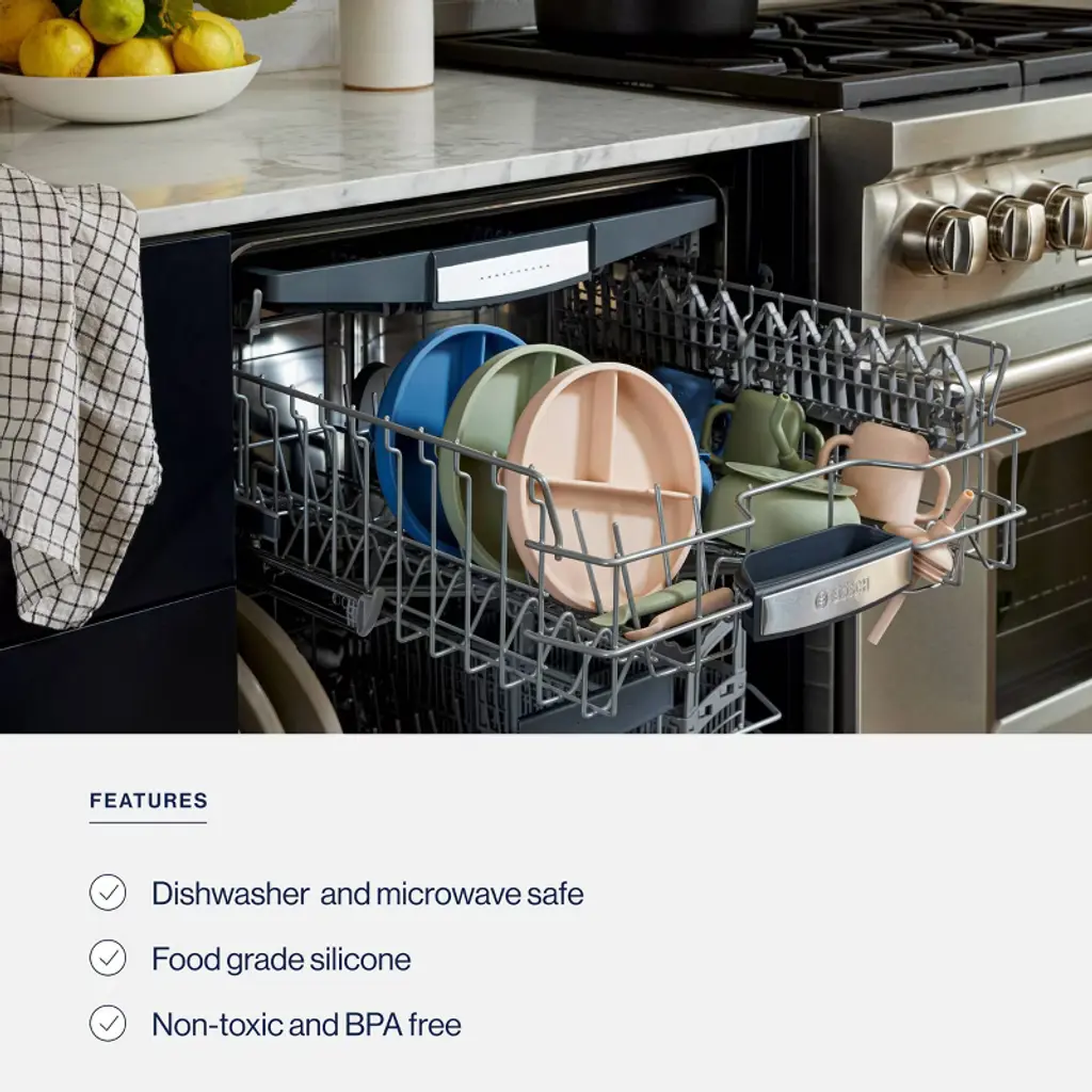 The Big Bites Plate is made for little ones ready to explore new flavors and favorite go-tos. Designed with both style and function in mind, it’s crafted from food-grade, non-toxic, BPA-free silicone with a sturdy core for extra durability. The spacious design gives toddlers plenty of room to scoop, dip, and discover, while the smooth surface makes cleanup effortless. Dishwasher safe and built to last, this plate keeps mealtime simple, fun, and just the right amount of messy.