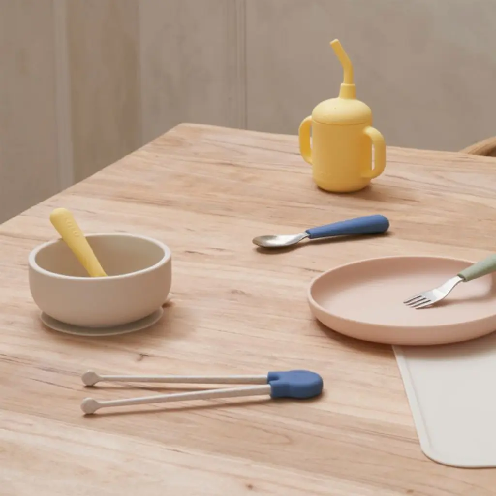 Take a bite out of boring dinnerware and encourage kiddos to eat independently with the Big Bites Full Toddler Dinnerware Set from Lalo. It includes a matching plate, bowl, cup, utensils, chopsticks and placematall made of food-grade silicone, stainless steel and wheat straw plastic. Big on style but sized just right, it's perfect for transitioning toddlers to the grown-up table.
