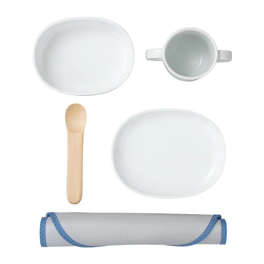 Take a bite out of boring dinnerware and encourage kiddos to eat independently with the Big Bites Full Toddler Dinnerware Set from Lalo. It includes a matching plate, bowl, cup, utensils, chopsticks and placematall made of food-grade silicone, stainless steel and wheat straw plastic. Big on style but sized just right, it's perfect for transitioning toddlers to the grown-up table.