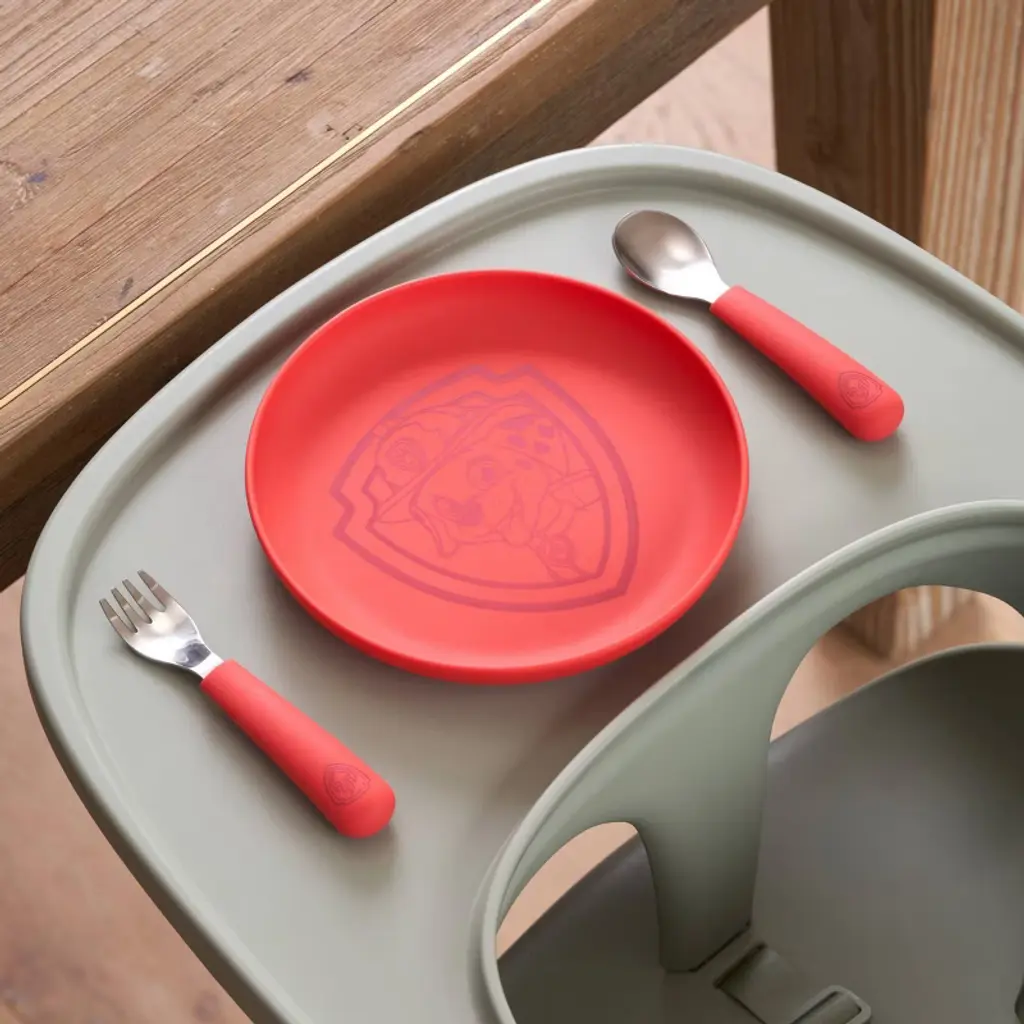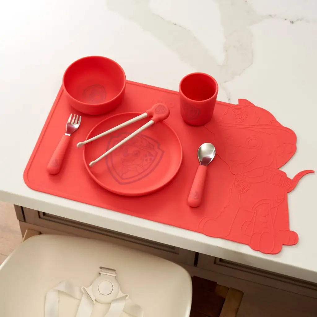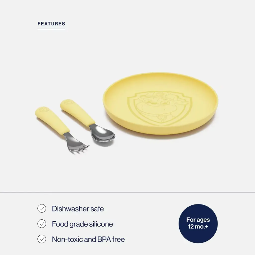 This pup’s gotta eat! Make mealtime a PAWsome adventure with the PAW Patrol™ Utensil Set. Designed for little hands learning to self-feed, this ergonomic fork and spoon combo makes every bite a win. Each set comes in four fun colors, featuring a PAW Patrol™ pup to cheer them on—Chase (Blueberry), Marshall (Red), Rubble (Popcorn), and Skye (Grapefruit). Made from non-toxic, BPA-free, food-grade silicone and stainless steel, they’re safe, durable, and dishwasher-friendly for easy cleanup. Mealtime mission: accomplished!