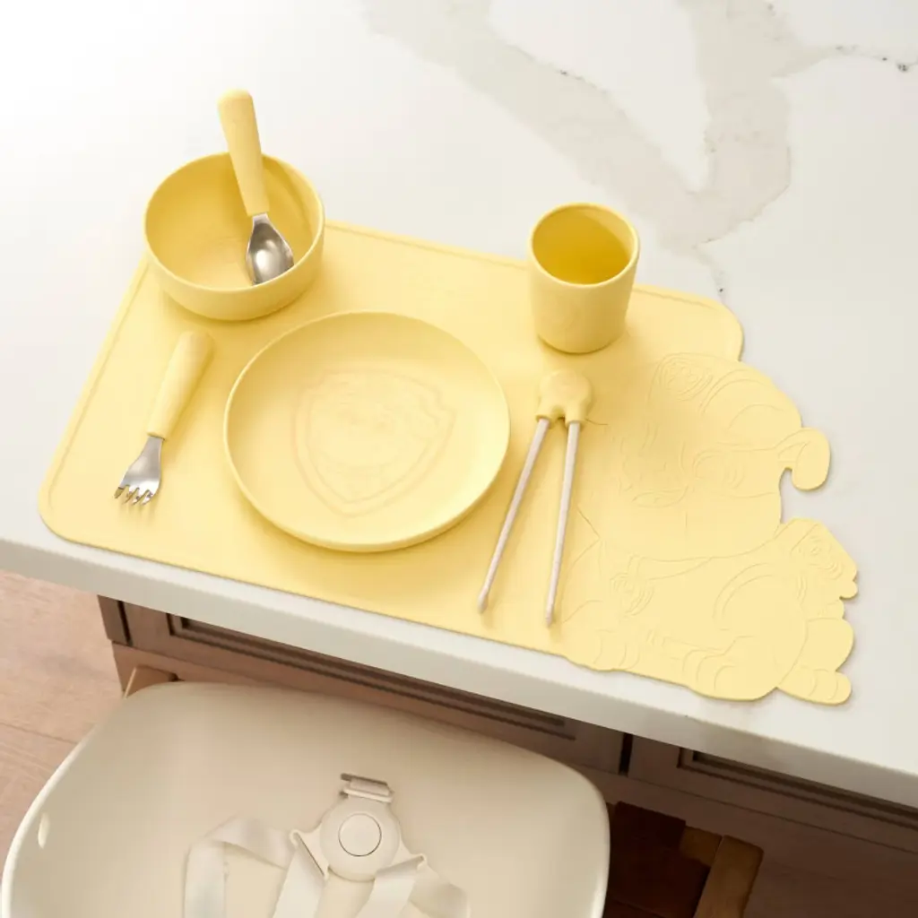 This set of two kid-friendly chopsticks makes mealtime a fun learning experience. Designed with little hands in mind, they come in four playful PAW Patrol™ colors—Blueberry for Chase, Red for Marshall, Popcorn for Rubble, and Grapefruit for Skye. Removable holders help beginners get the hang of it, while a textured dot pattern on the tips provides extra grip for easy grabbing. Made from non-toxic, BPA-free food-grade silicone and eco-friendly wheat straw, they’re safe, durable, and dishwasher-safe for easy cleanup. Ready, set, grab!