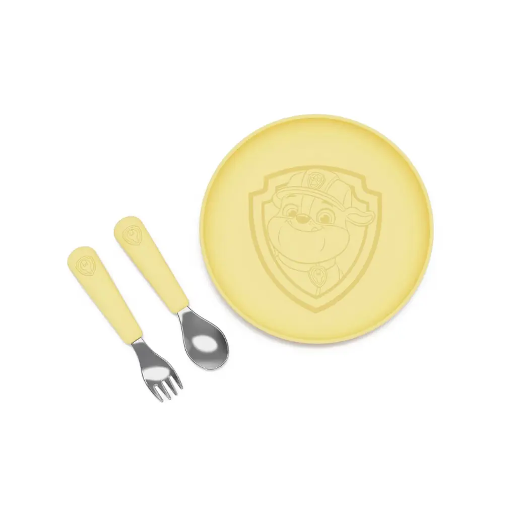 Lalo Paw Patrol 3Pc Silicone Plate + Utensils Set - Rubble