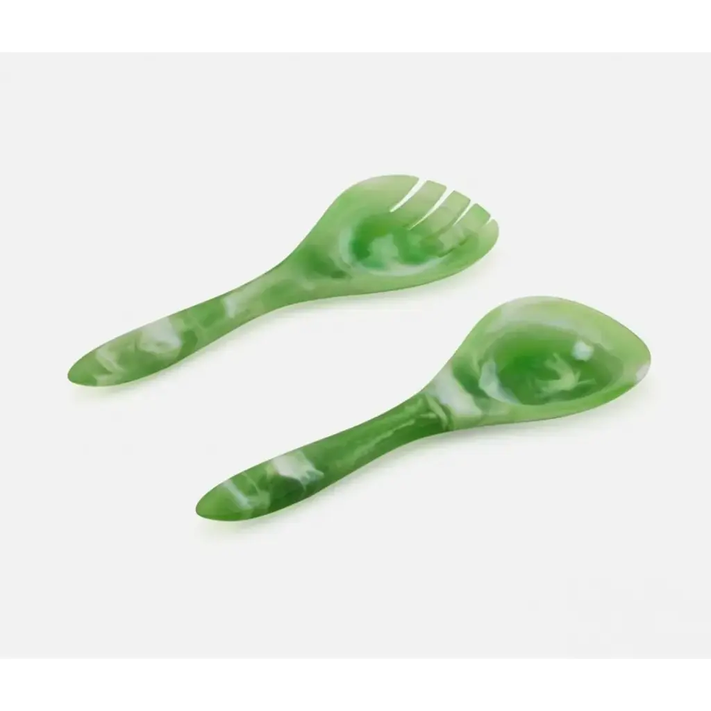 Give your table a spot of vivid color with our Laney serving spoon and fork set—crafted from amber, blue, green, or pink swirled resin. Blue Pheasant's products are handmade with care by artisans using natural materials. They are not mass produced, so variation between products should be expected, and this is why we love them! It is these irregularities that makes Blue Pheasant what it is—a special brand whose collections are distinctly handmade, full of charm and originality you’ll never find in machine-made products.