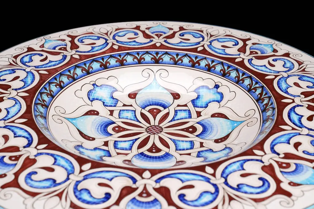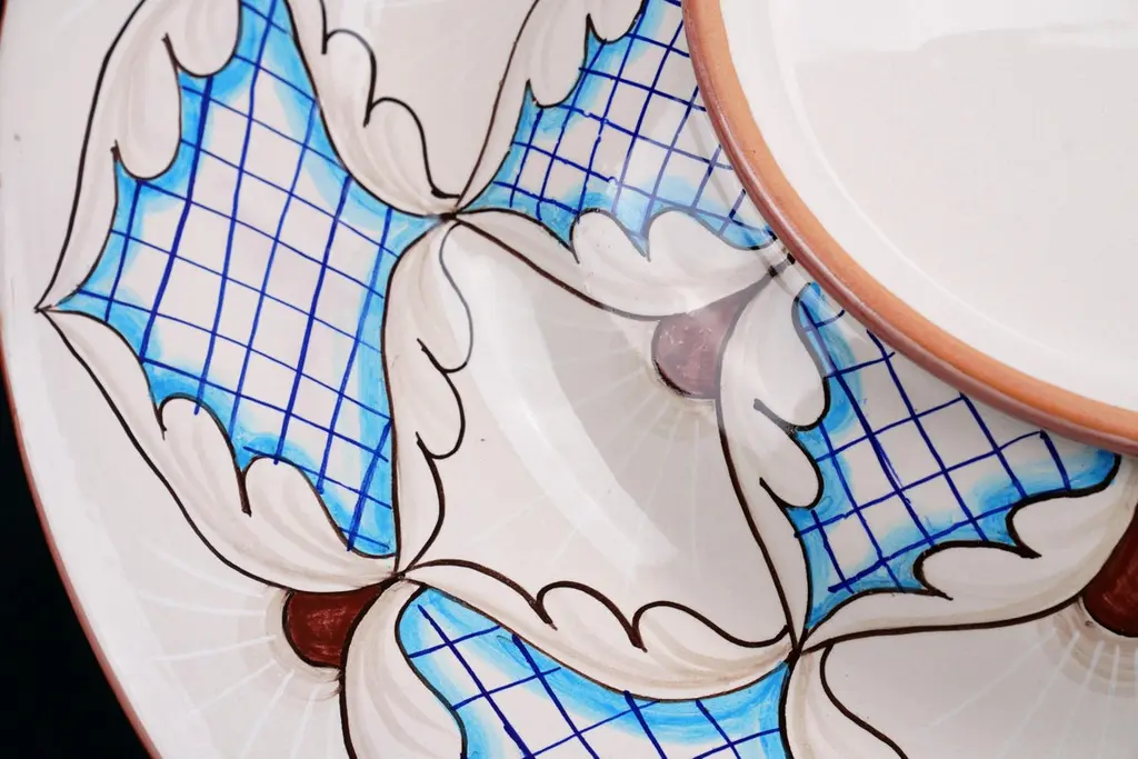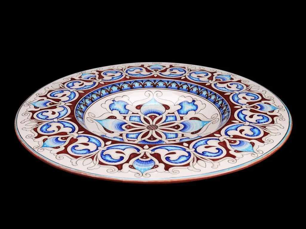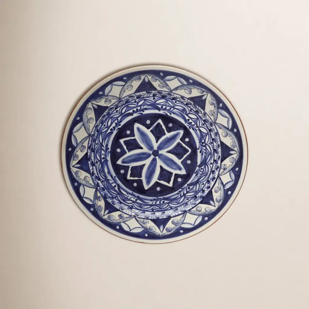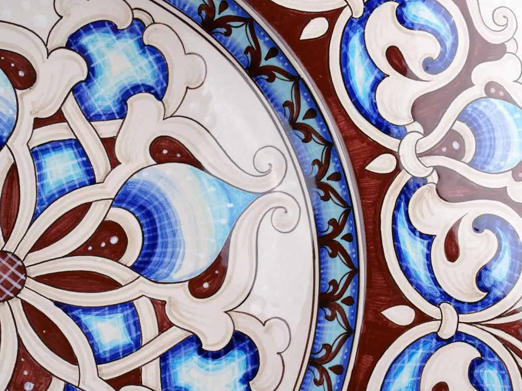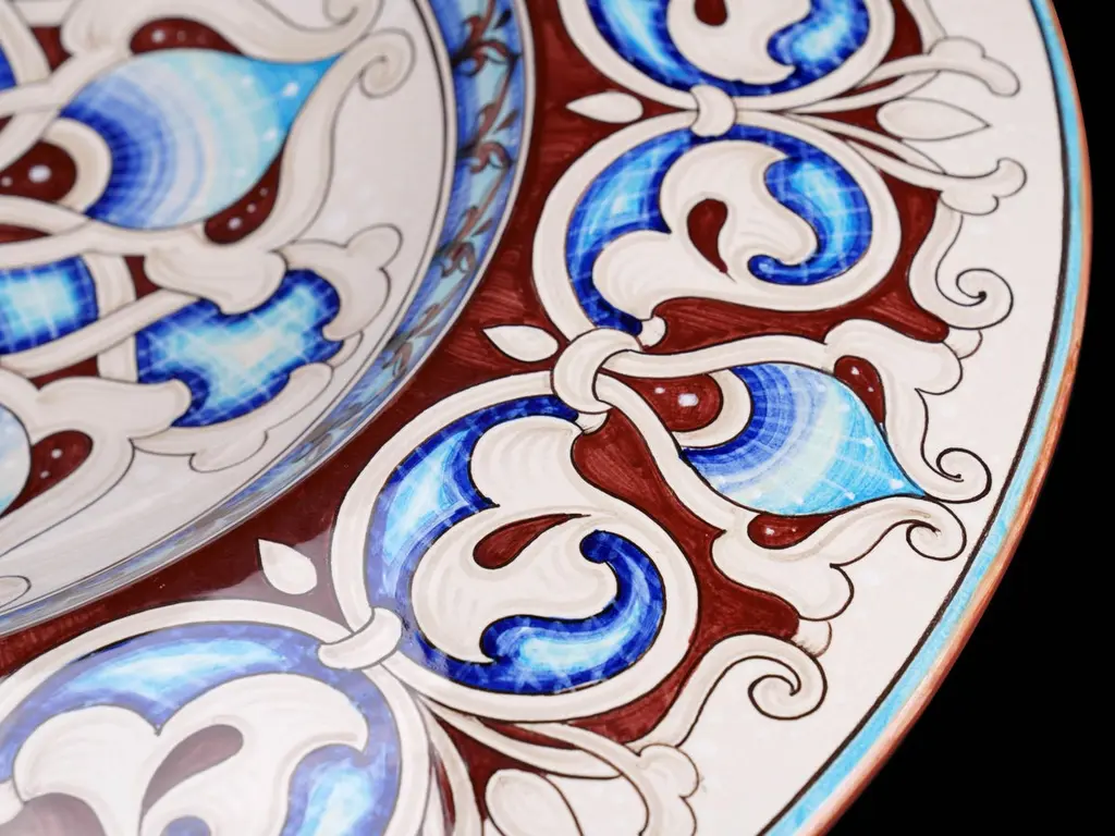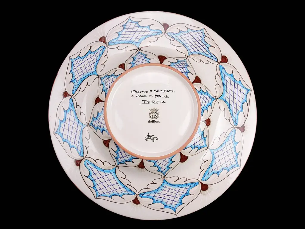 Our ceramic plate "Mediterranean Nuances" is handmade and hand-painted in Italy: realized in majolica painted in polychrome, it is characterized by elegant decorative motifs of the Deruta tradition colored with different variations of blue and brown tones following the original Renaissance painting technique. The particular shape of this dish is traditionally called "a priest's hat". This majolica can be exposed as an centerpiece or it can be used as a fancy wall dish. The accuracy of the details adds a further qualitative element to the piece: our majolica plate is made unique by the presence of hand-painted decorations also on the back, together with the certification mark, bringing back the ancient and almost lost splendor of crafted.Dimensions: diameter 60cm (23.62 in.)Colors: Vanadium, brown, Deruta blue, cerium oxide, brown-sepia.Visit our storefront to discover the whole deBlona collection.The beauty of a deBlona majolica is determined by the ancient process, unchanged over time and handmade, which we observe to the letter in the creation of our artworks: painting ceramics is a very complex, fascinating and insidious art, but it is precisely the human and imperfect sign that makes every piece so characteristic and totally unique. deBlona's essence is represented by the interpretation of the color and by an unrepeatable taste, with which we want to give new chromatic emotions. Majolica accompanies the history of mankind, telling its existence for centuries: here, in our Atelier, we want to keep on narrating our time.