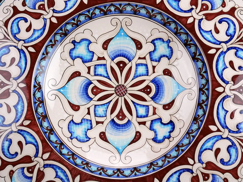 Large Decorative Plate Majolica Wall Dish, Centerpiece Hand Painted Italy Deruta